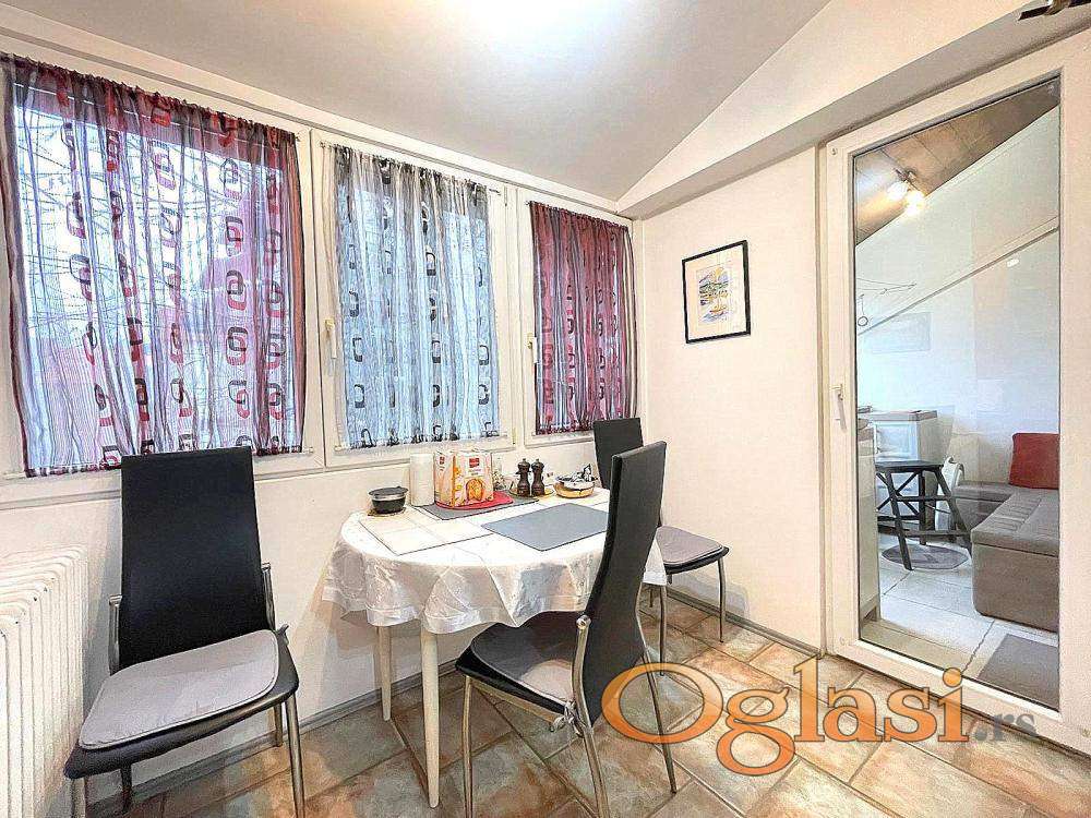 Kupatilo je kompletno renovirano prošle godine, uz zamenu instalacija, a ostatak stana odiše urednošću i kvalitetom. Postavljena je kvalitetna PVC fasadna stolarija sa komarnicima i roletnama, dok su podovi kombinacija vrhunske keramike i kvalitetnog laminata, pažljivo uklopljeni u celinu prostora.