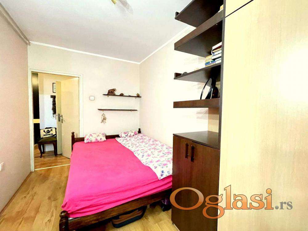 Na drugom spratu uredne i održavane zgrade, povučen od gradske buke i okrenut ka zelenilu, nalazi se ovaj izuzetno funkcionalan dvosoban stan koji pruža mir i komfor svakodnevnog života. Raspored je logičan i praktičan – iz hodnika se ulazi u sve prostorije, bez prolaznih soba.