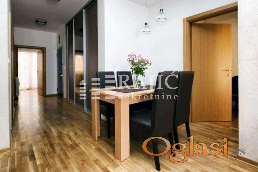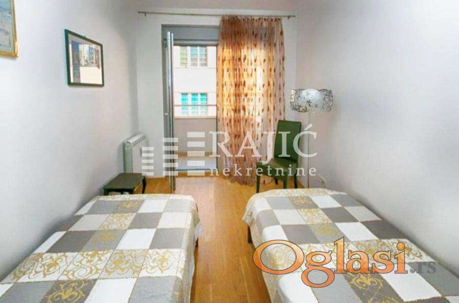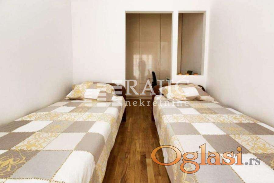 Prostran, svetao i kompletno namešten trosoban stan na jednoj od najtraženijih lokacija u gradu. Stan se nalazi u zgradi novije gradnje, održavanog ulaza i vrhunskog kvaliteta. ​Struktura: Trosoban stan sa odličnim rasporedom prostorija. ​Dnevni boravak: Otvoreni koncept prostor koji objedinjuje dnevnu sobu, trpezariju i modernu, potpuno opremljenu kuhinju. ​Spavaći blok: Dve komforne spavaće sobe. ​Kupatila: Dva moderna i funkcionalna kupatila (jedno sa kadom,drugo sa tuš-kabinom). ​Terase: Dve terase, idealne za opuštanje. ​Opremljenost: Stan se izdaje kompletno namešten (kvalitetan nameštaj, bela tehnika, klima uređaji). ​Dodatne pogodnosti: ​Garaža: Mogućnost zakupa parking mesta u podzemnoj garaži sa auto-liftom (uz doplatu). ​Lokacija: Srce Vračara – blizina marketa, restorana, škola i povezanost sa svim delovima grada. Kućni ljubimci nisu dozvoljeni. ​Cena:1300e+depozit u visini jedne kirije. Dostupnost: Odmah useljiv. Agencijska provizija 60%.