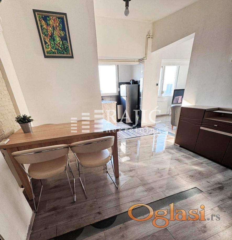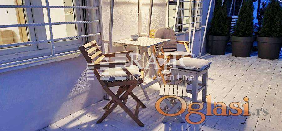 Izdaje se svetao stan u centru grada, na dobroj lokaciji. Prostorije: dnevni boravak, kuhinja sa trpezarijom, dve spavaće sobe, kupatilo i terasa sa koje se pruža divan panoramski pogled. Stan se izdaje namešten i opremljen. Parkiranje je moguće u dvorištu zgrade i uračunato je u cenu. Terasa ima 19 m2 i zajednička je.
