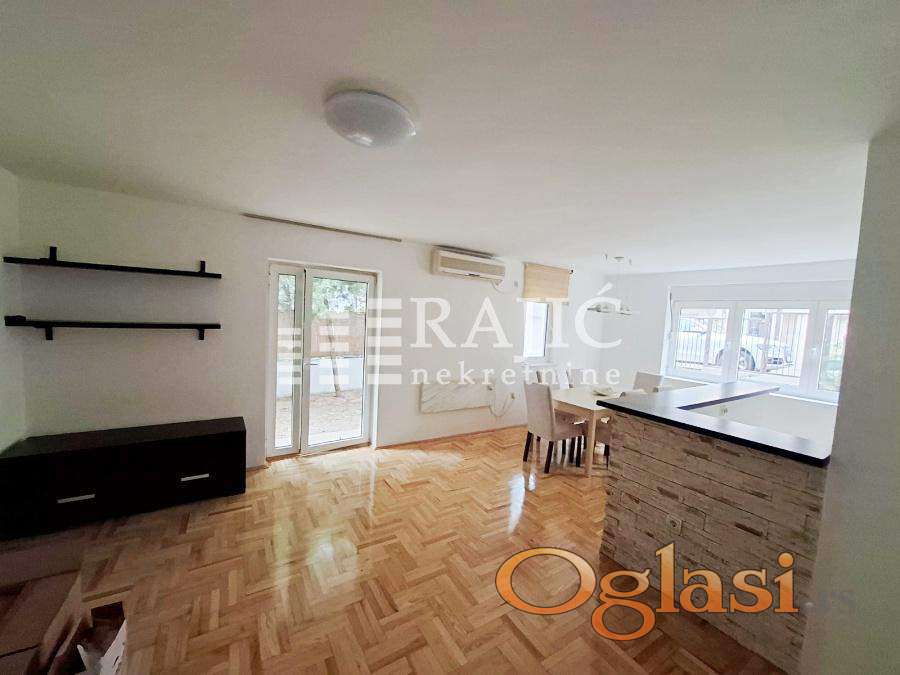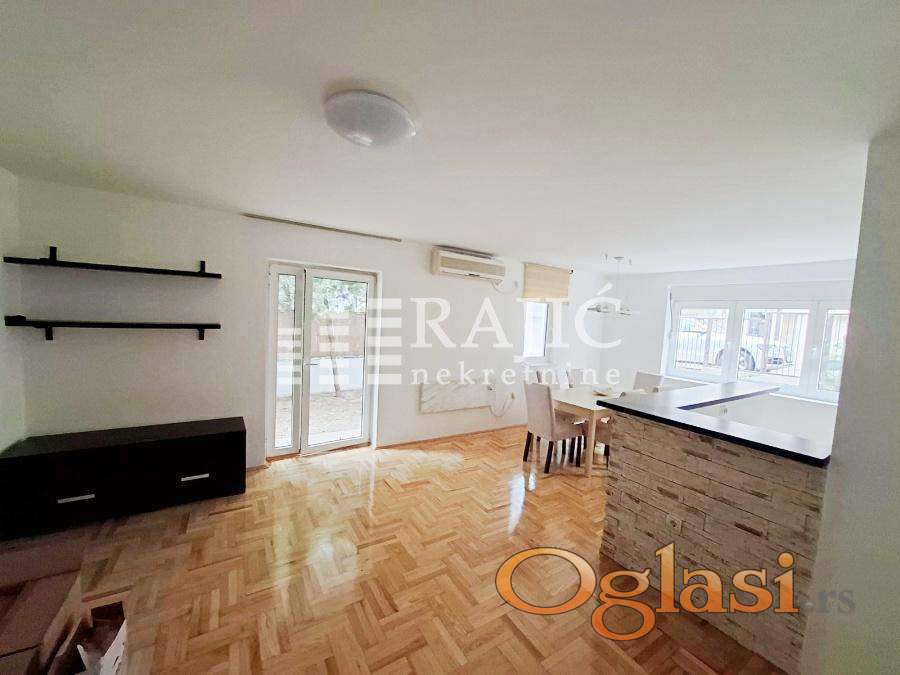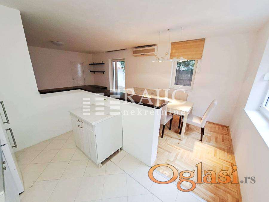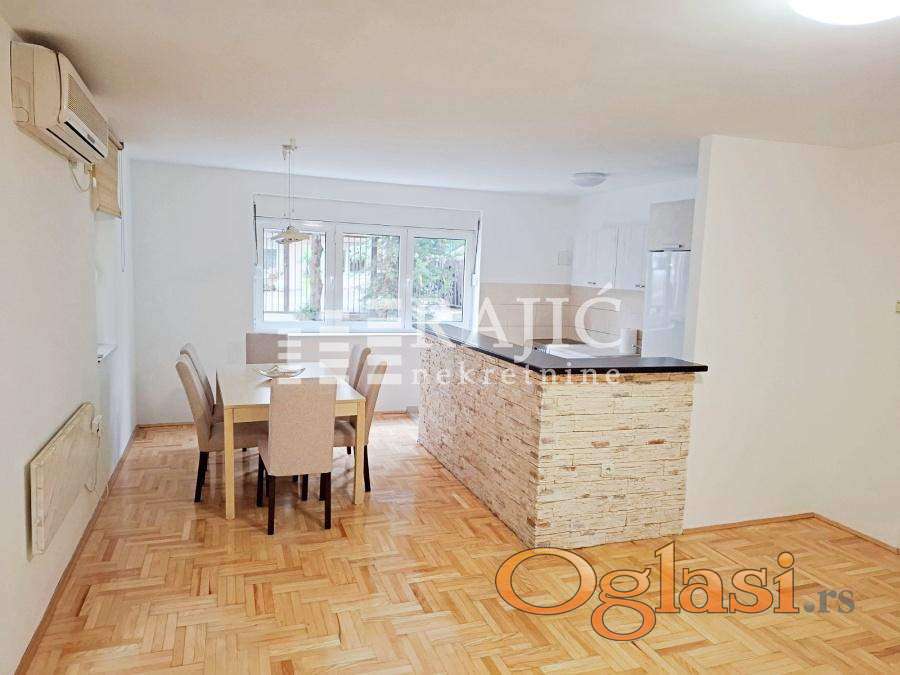 Odličan prizeman stan ili poslovni prostor, kompletno renoviran sa svim novim kuhinjskim elementima i belom tehnikom, izdaje se polunamešten, kao na slikama. Prostrano dvorište sa dva parking mesta i baštom. Mermerni radijatori. Adaptiran da se može koristiti kao višenamenski poslovni prostor: predstavništa kancelarije , ordinacija, kozmetički salon show room, škola jezika, igraonica-čuvaonica za decu i sl. Zgrada na 200m od Bulevara u mirnoj ulici Aluminijumska stolarija, hrastov parket, klima 24Bt Depozit u visini jedne mesečne kirije Niske režije. Agencijska provizija 60%.