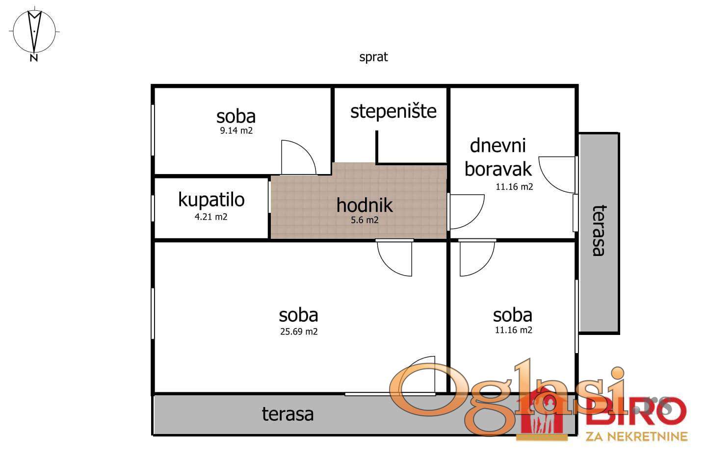 * Sprat: četiri sobe, predsoblje, kupatilo