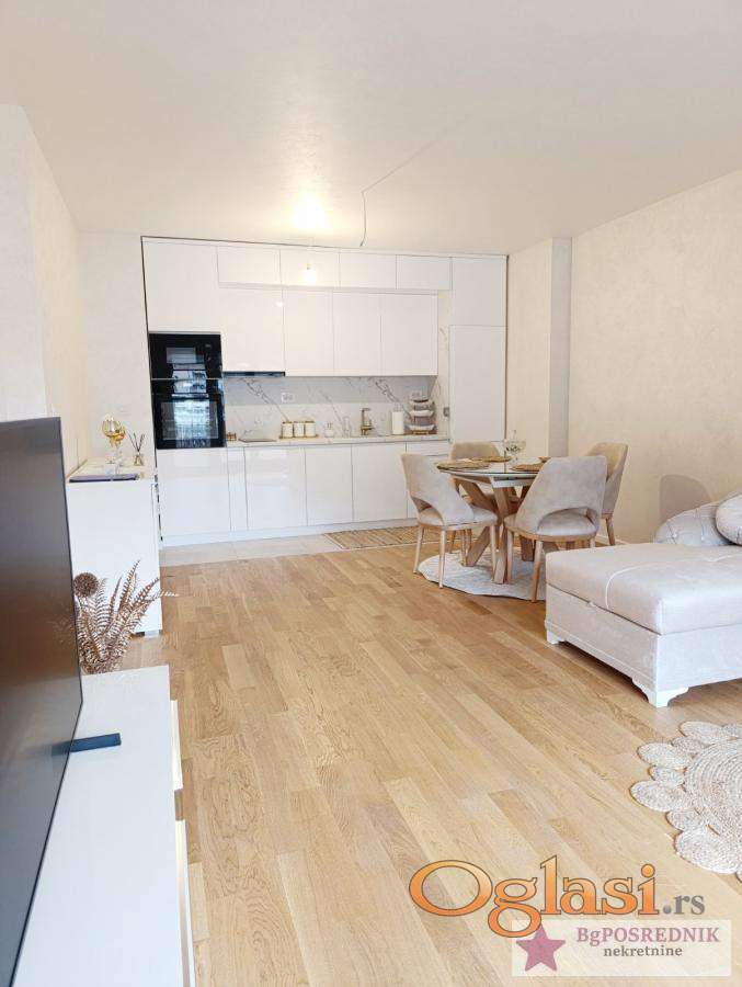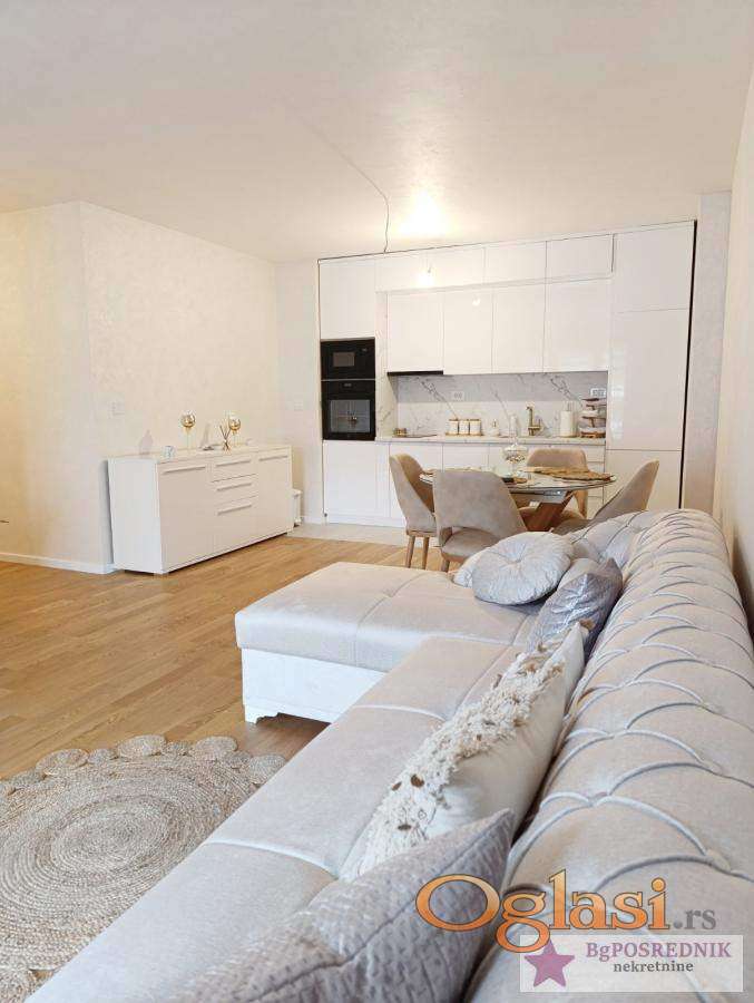 Funkcionalnog rasporeda, sastoji se od: prostranog dnevnog boravka sa kuhinjom i trpezarijom, dve spavaće sobe, kupatilo, toalet, terasa.