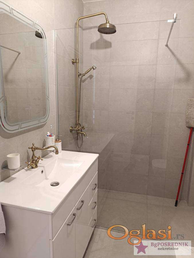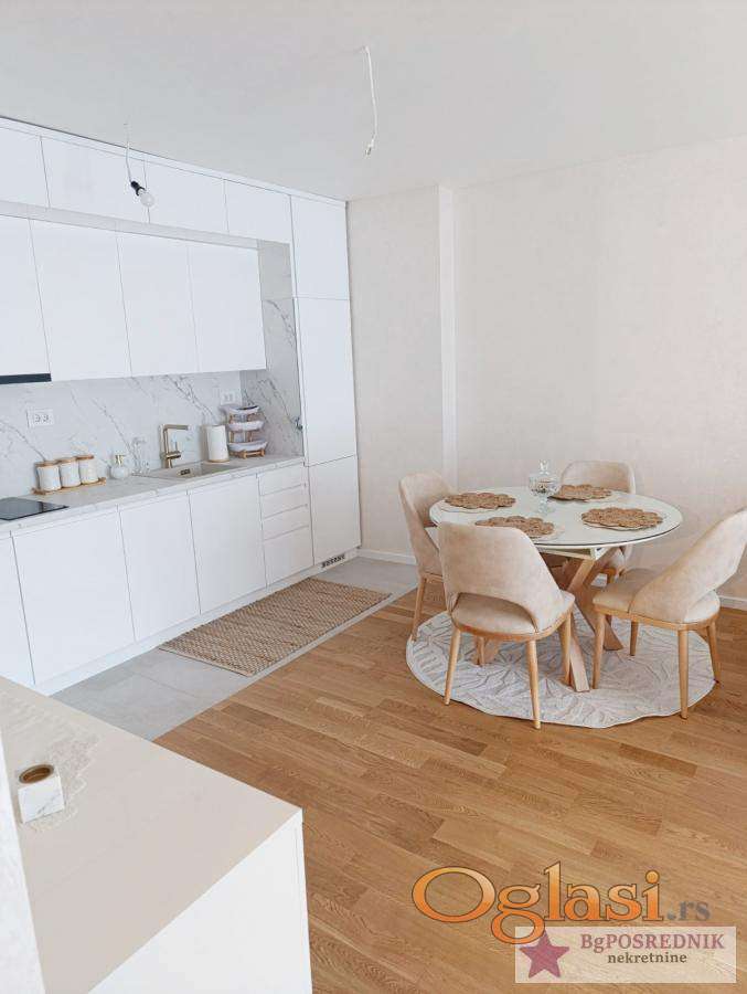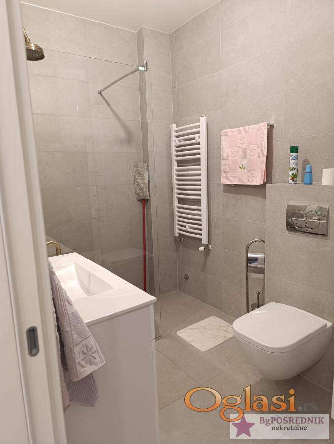Kvalitetna sanitarija i parket, unutrašnja stolarija, spoljna stolarija je PVC-ALU, roletne na električni pogon, garažno mesto u suterenu zgrade i uračunato je u cenu stana.