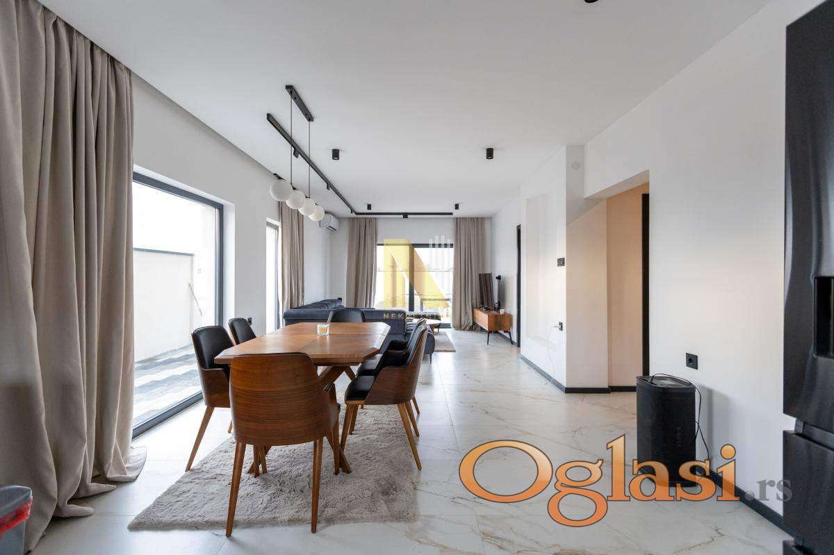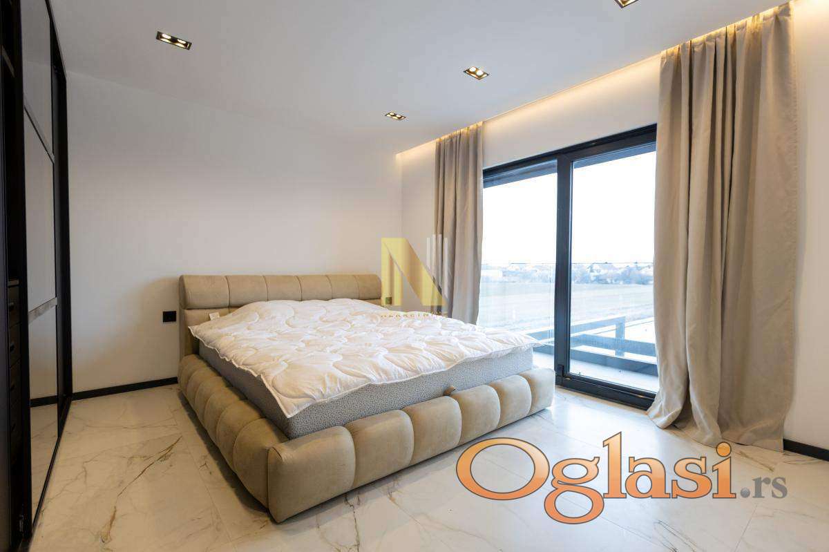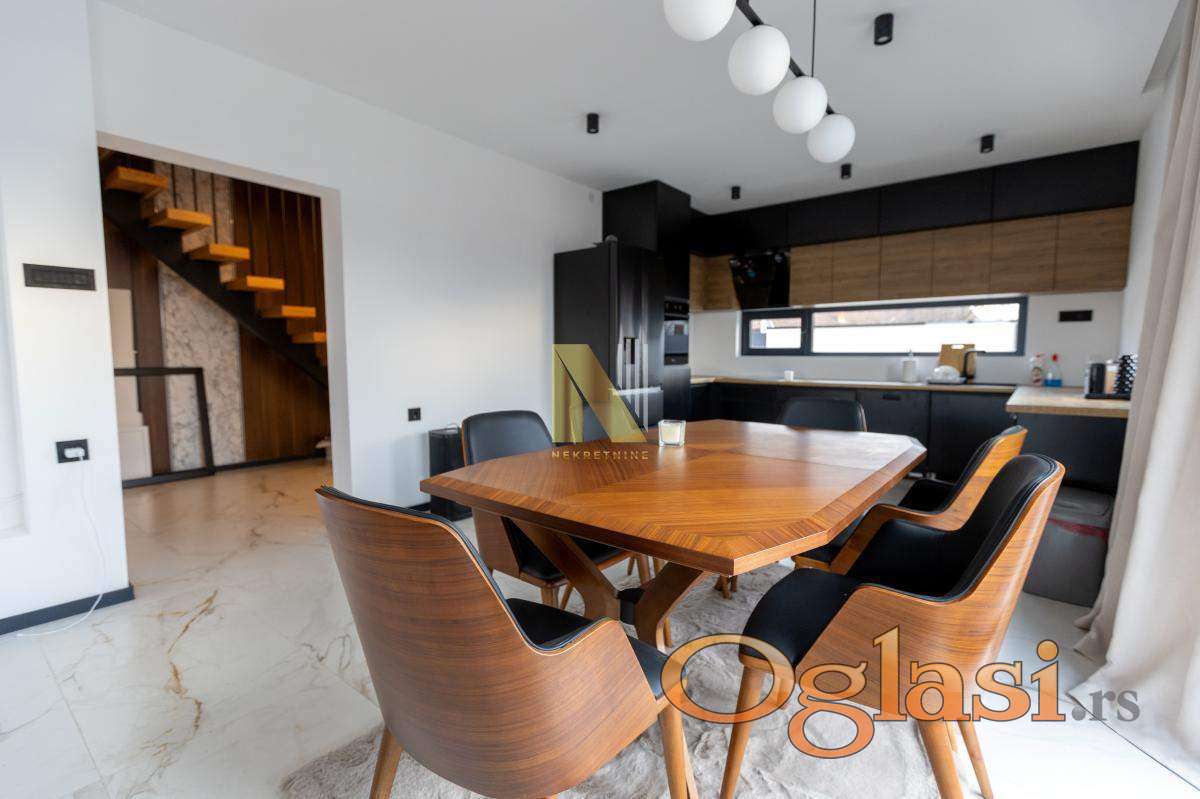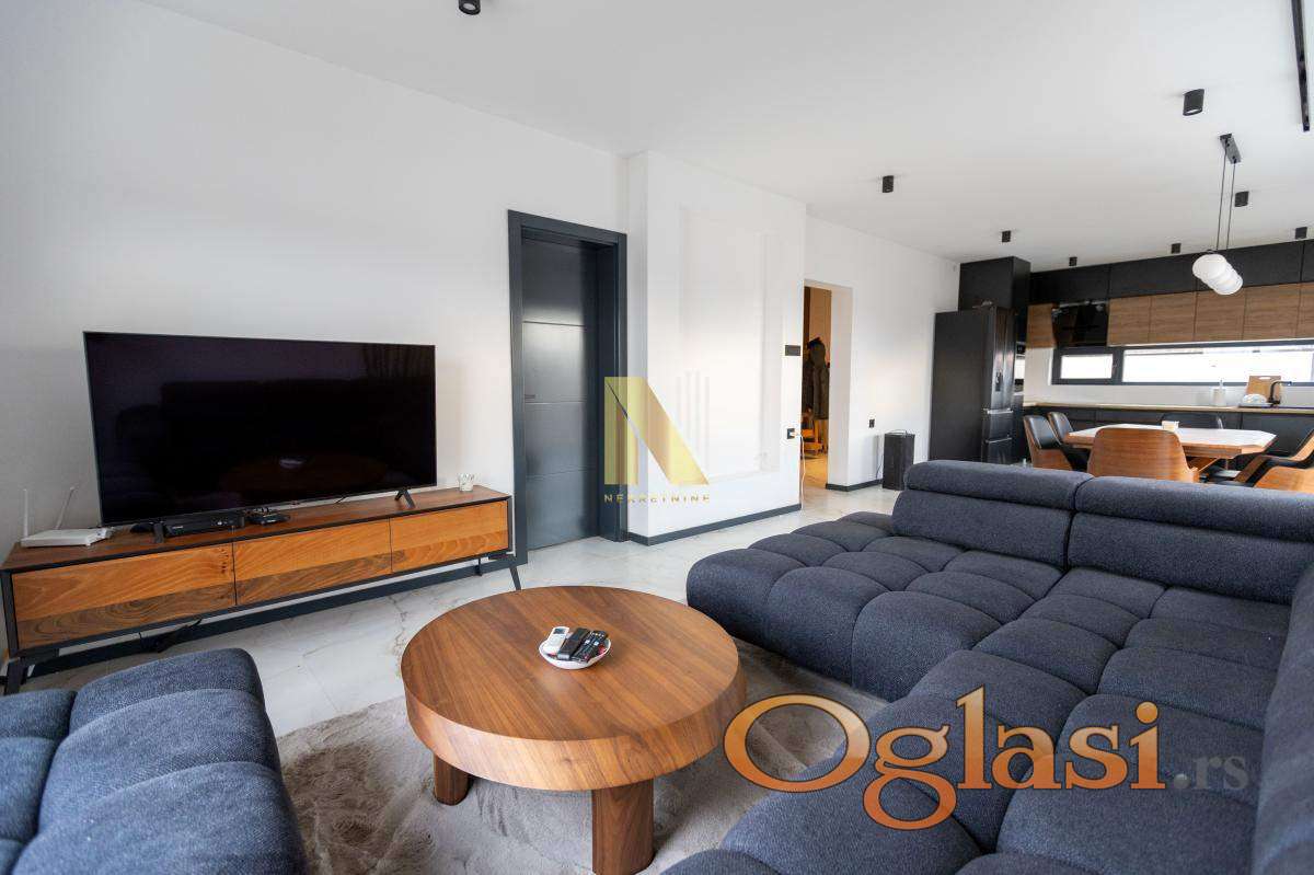 Na prodaju nova montažna kuća u Veterniku - potpuno sređena, useljiva odmah. Ako tražite nov, moderan i fukcionalan dom bez ikakvih ulaganja, ovo je prava prilika. Kuća je kompletno završena i pažljivo uređena, u lepom i mirnom delu Veternika. Projektovana je tako da pruža maksimalnu udobnost i praktičnost za porodičan život. Sastoji se u donjem delu iz prostrane dnevne sobe sa kuhinjom i trpezarijom. Prostor je veoma svetao i ima izlazak na veliku terasu na koju se nastavlja dvorište sa instaliranim zalivnim sistemom. U prizemlju se još nalaze spavaća soba, kupatilo i hodnik. Modernim stepenicama povezano je sa spratom kuće gde se nalaze tri spavaće sobe kupatilo i terase. Svaka soba ima izlaz na terasu. U kući je podno grejanje na toplotne pumpe, kao i inverter klime. Poseduje video nadzor.