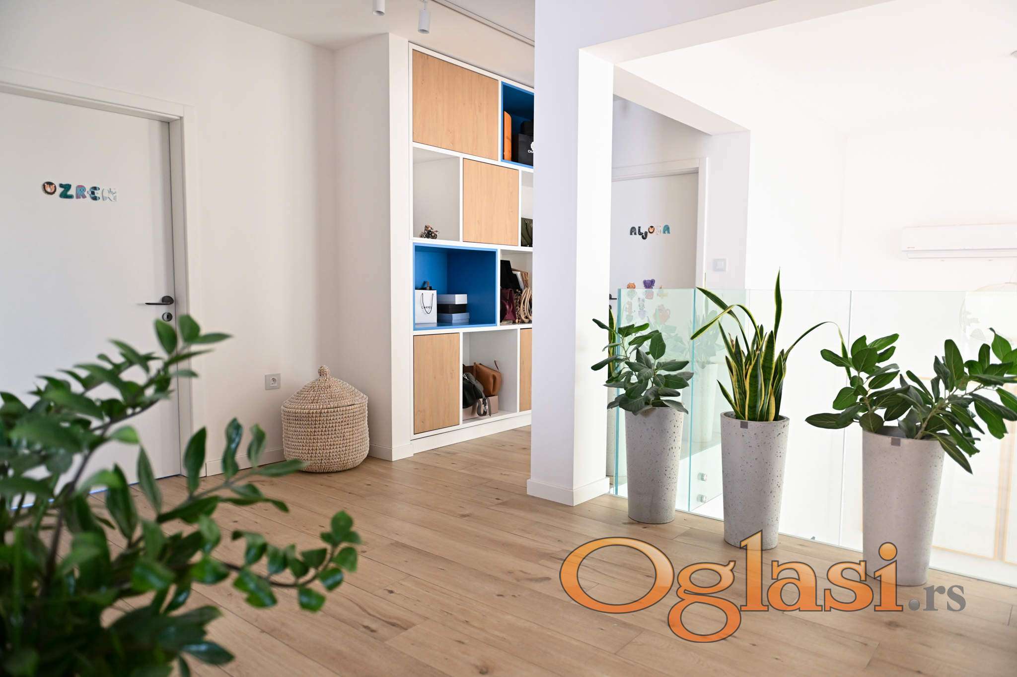 - Kuća se sastoji od prizemlja i sprata. Sa sprata - galerije pruža se pogled na prostran i svetao dnevni boravak. U prizemlju se nalaze dnevni boravak sa trpezarijom i kuhinjom, radna soba, toalet. Na spratu se nalaze galerija, master spavaća soba sa kupatilom i garderober sobom, dve sobe, kupatilo, vešernica.