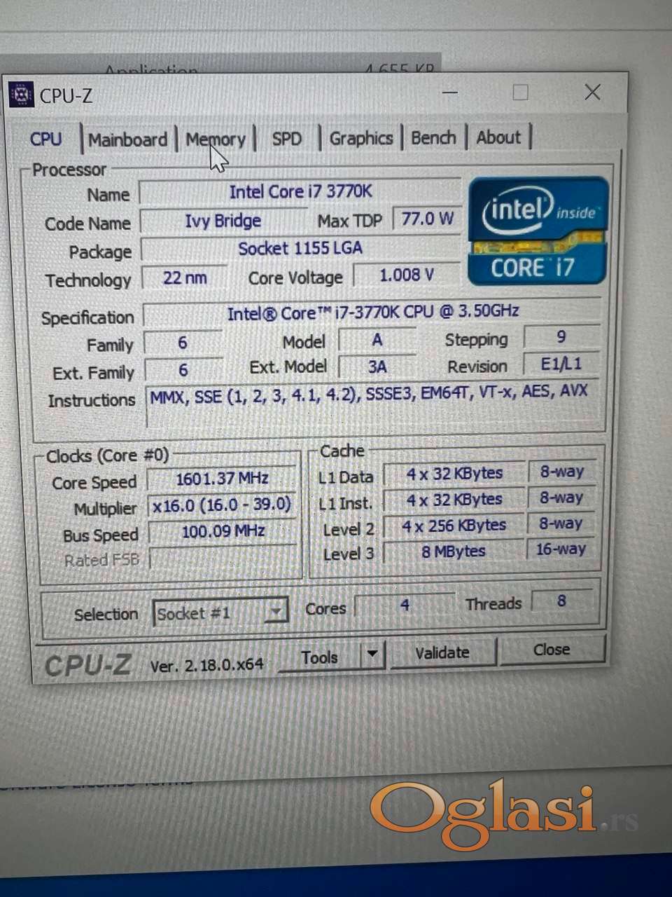 Procesor: i7 3770K 3.50Ghz (3.90Ghz) 4 jezgra i 8 thread-ova.