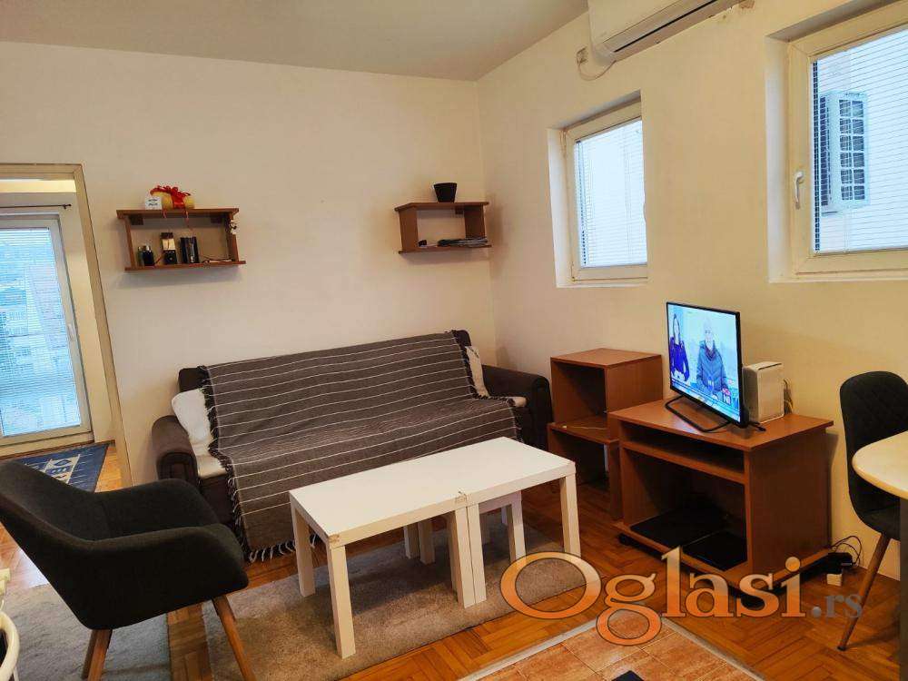 Izdaje se manji 2.0 stan nedaleko od Beo tržnog centra, sa novim uređajima, parking za stanare zgrade,isključivo na duže.