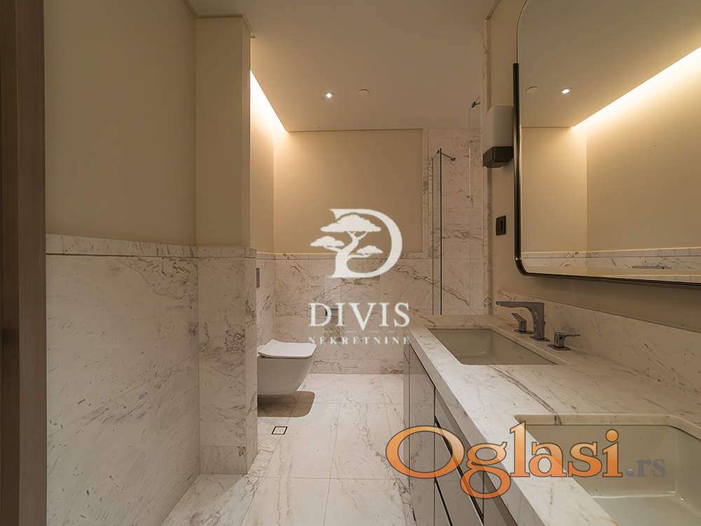 Stan se nalazi u okviru St. Regis Residences i nosi potpis brenda The St. Regis Belgrade, što garantuje standard usluge i kvaliteta na nivou najluksuznijih svetskih rezidencija.Nekretninu odlikuje izuzetno prostrana i funkcionalna organizacija prostora. Dnevni boravak sa kuhinjom i trpezarijom projektovan je po open space konceptu, sa impresivnim staklenim površinama od poda do plafona koje prostoru daju posebnu eleganciju i obilje prirodne svetlosti.