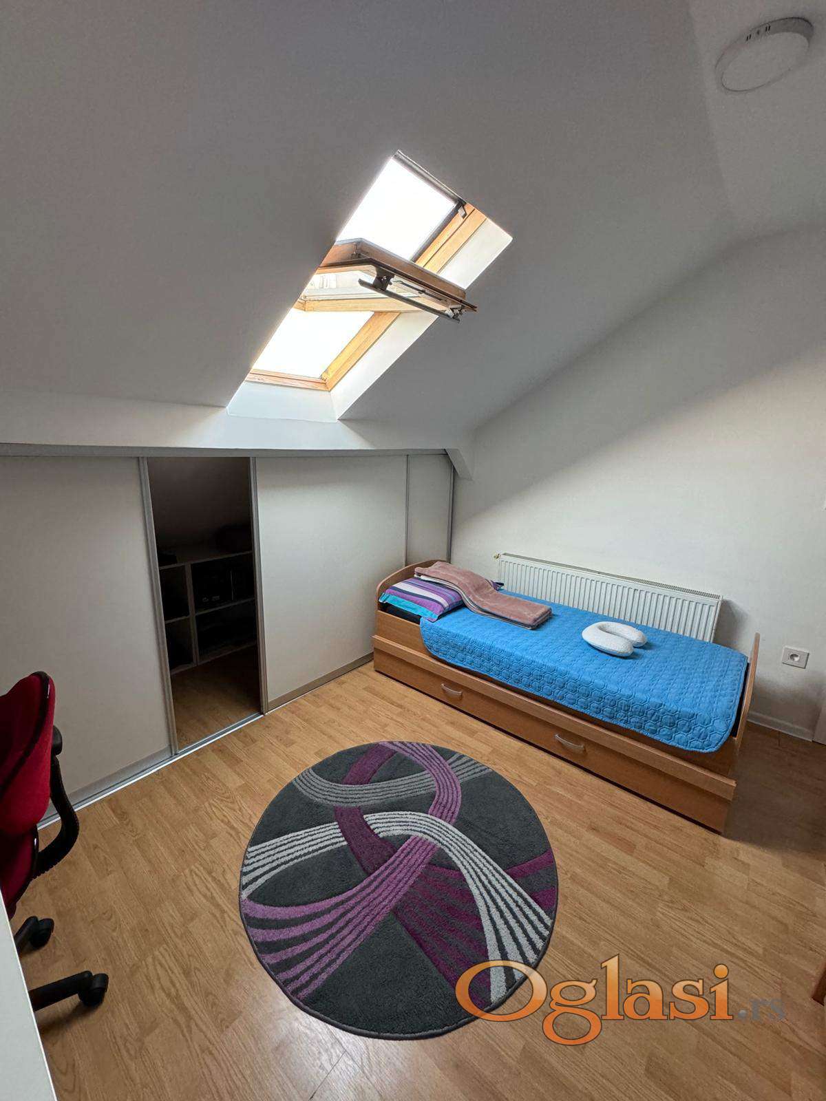 Stan je uknjižen na 60 m², dok stvarna površina u prirodi iznosi oko 95 m². Odlikuje ga fantastičan raspored prostorija, koji omogućava maksimalnu iskorišćenost prostora. Kosine su odlično uklopljene i ne remete funkcionalnost stana, što ga čini izuzetno praktičnim za svakodnevni život.
