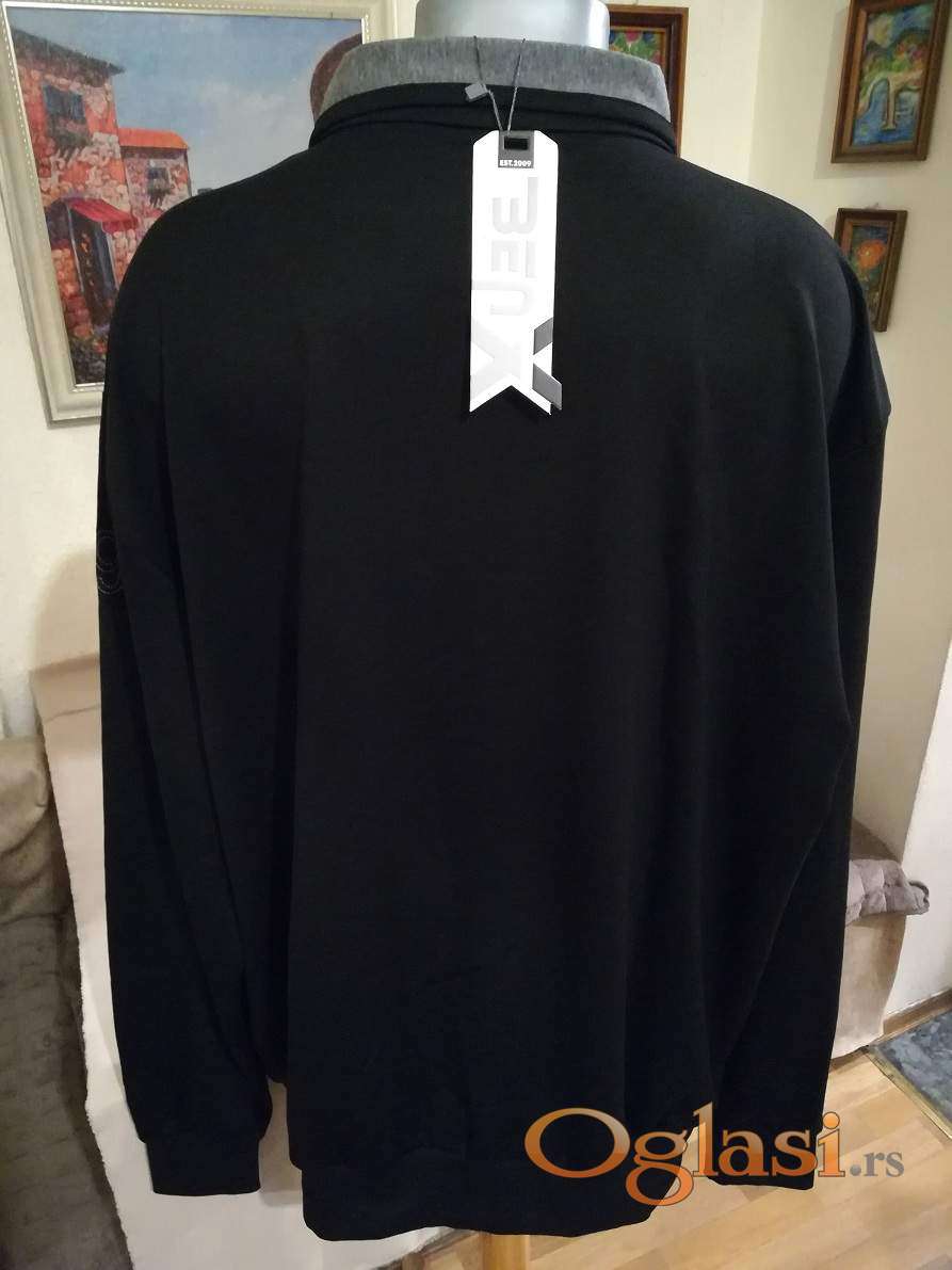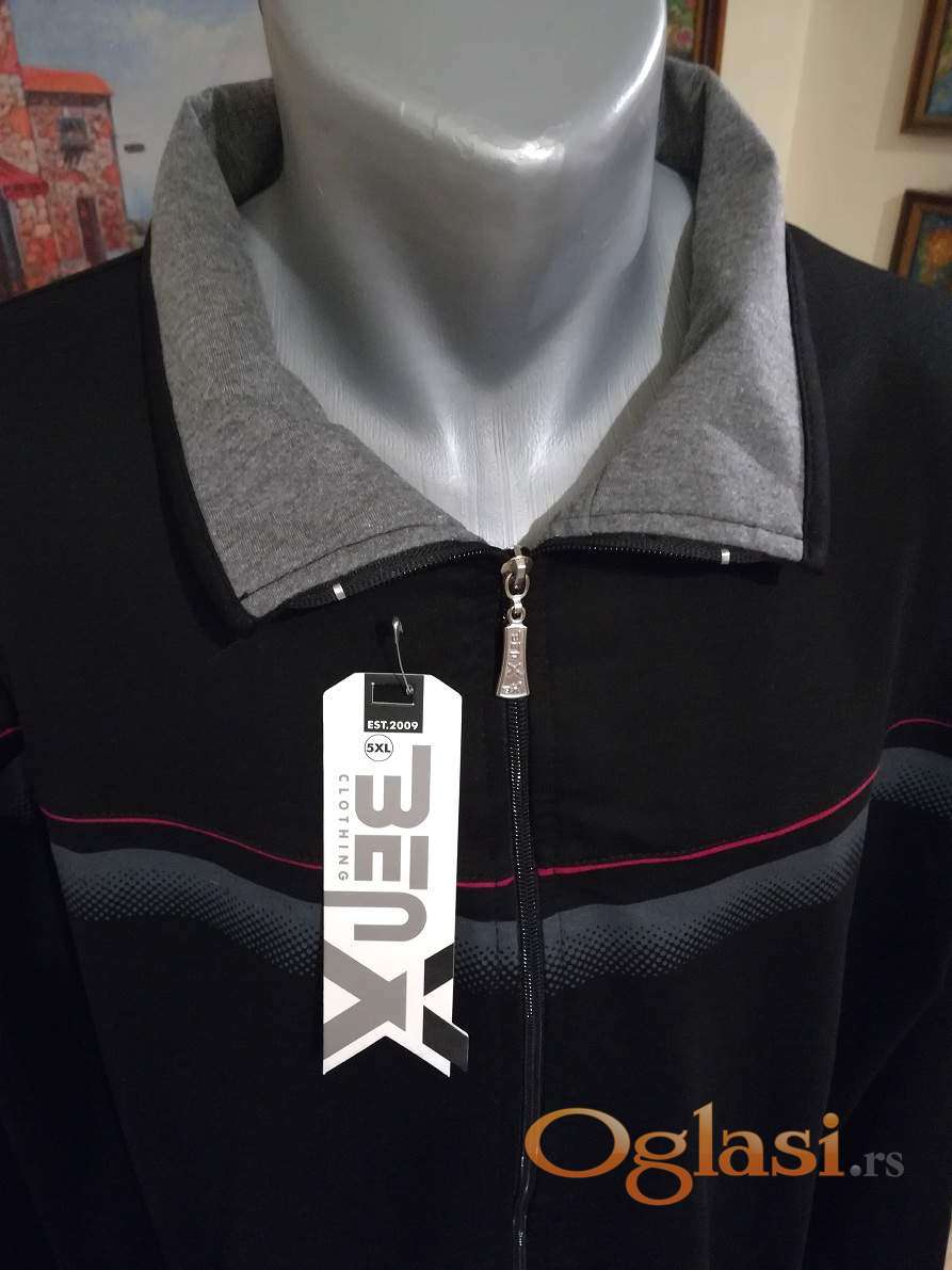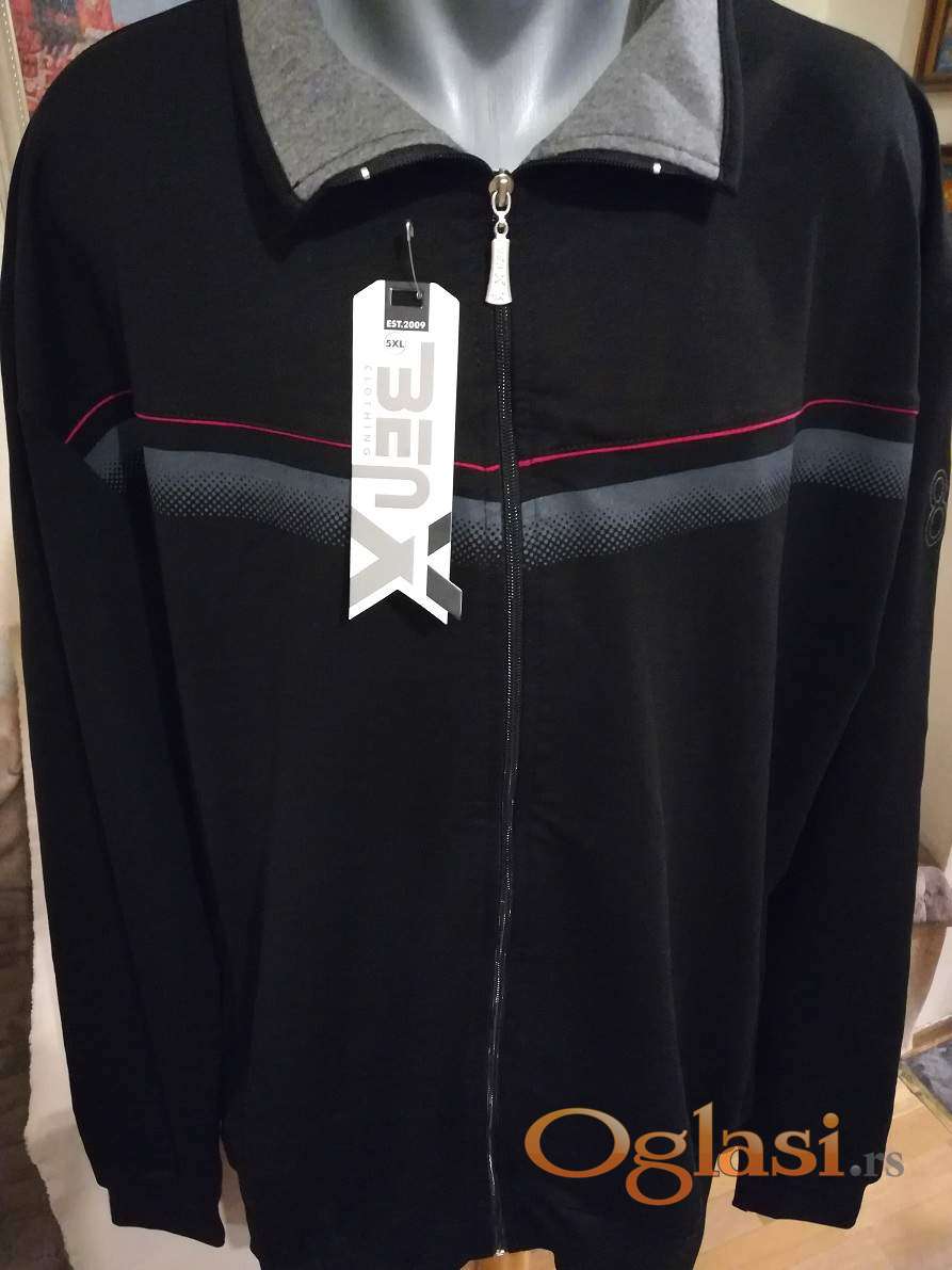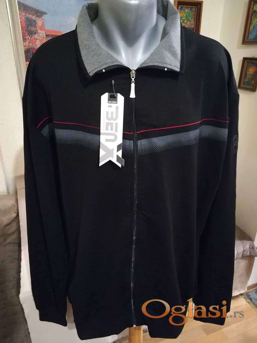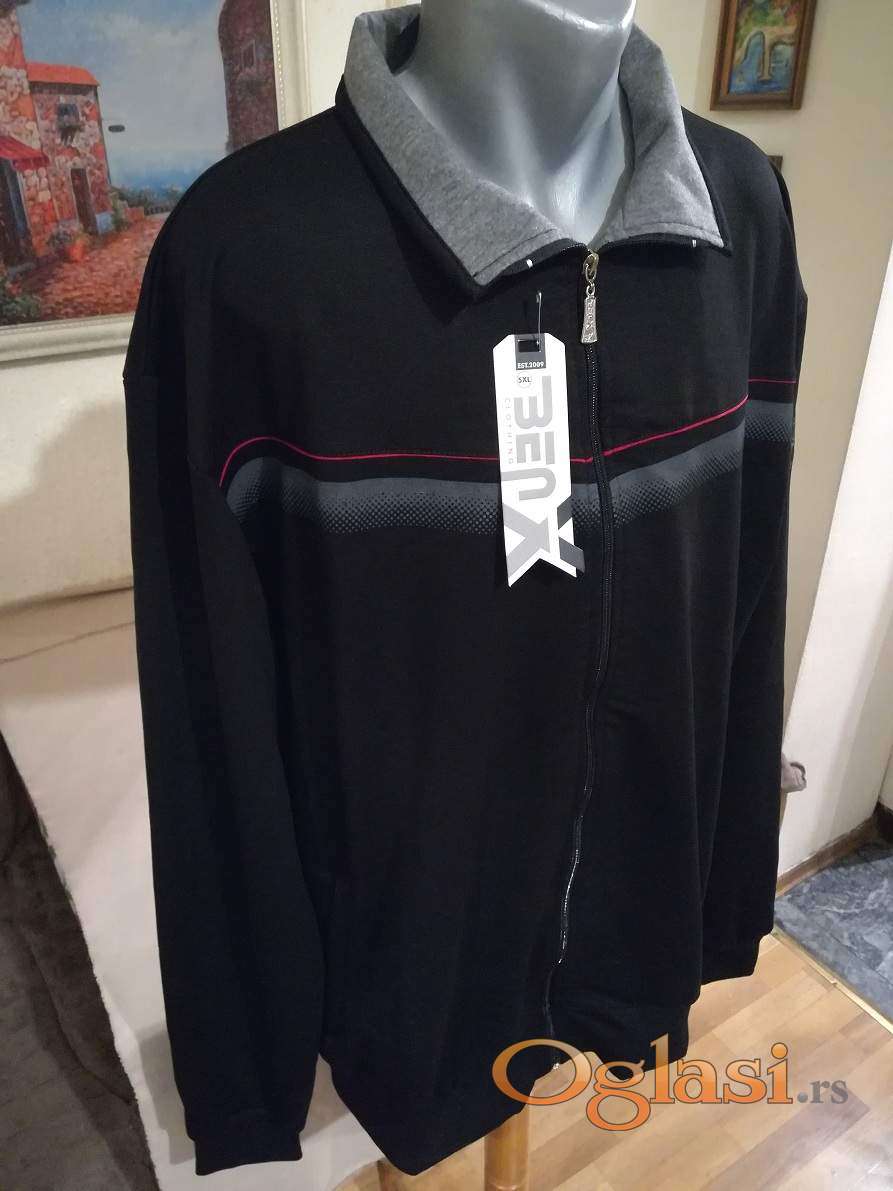 Novi muski duks sa kragnom u velikom broju Benx 5XL Crni. Novopazarski. Odlican muski duks za muskarce svih uzrasta. Uradjen od prijatnog i vrlo kvalitetnog materijala. Lagan, komotan, vrlo lepog dezena, lako se kombinuje sa bilo kojim komadom garderobe. Izuzetan muski duks koji ima dva dzepa sa ziperom sa prednje strane, kragnu i kopca se na rajferslus. Super ide na farmerke, pantalone i trenerke. Mogu ga nositi i punije osobe sa preko 120 kg. Dukserica sa kapuljacom Benx je nova sa etiketom.