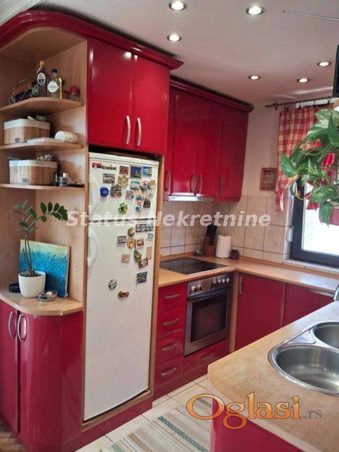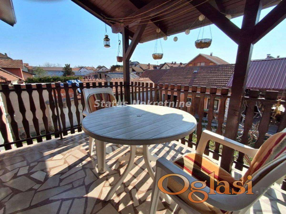 ****Odličan porodični stan*** Povoljno ! Prodajemo u mirnoj ulici u Veterniku stan u kući. Nalazi se na prvom spratu i ima i pripadajući tavanski prostor koji daje mogućnost za dodatni stambeni prostor. Stan poseduje tri spavaće sobe , kupatilo, predsoblje. Kuhinja, trpezarija i dnevna soba su jedna celina. Iz tog dela se izlazi na terasu, koja je dvorišno orjentisana i koja poseduje hladnu ostavu. Stan ima i pripadujuću garažu kao i dodatnu ostavu u tom delu zgrade. Papirološki stan je odvojen i uknjižen na 88m2. Grejanje na gas. Na samo sto metara je stajališe gradskog prevoza a u blizini je i škola. Informacije na broj telefona: 065 385 88 81, Irena. Više fotografija možete pogledati na našem sajtu: www.status-nekretnine.com A57-22411.