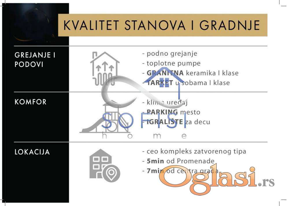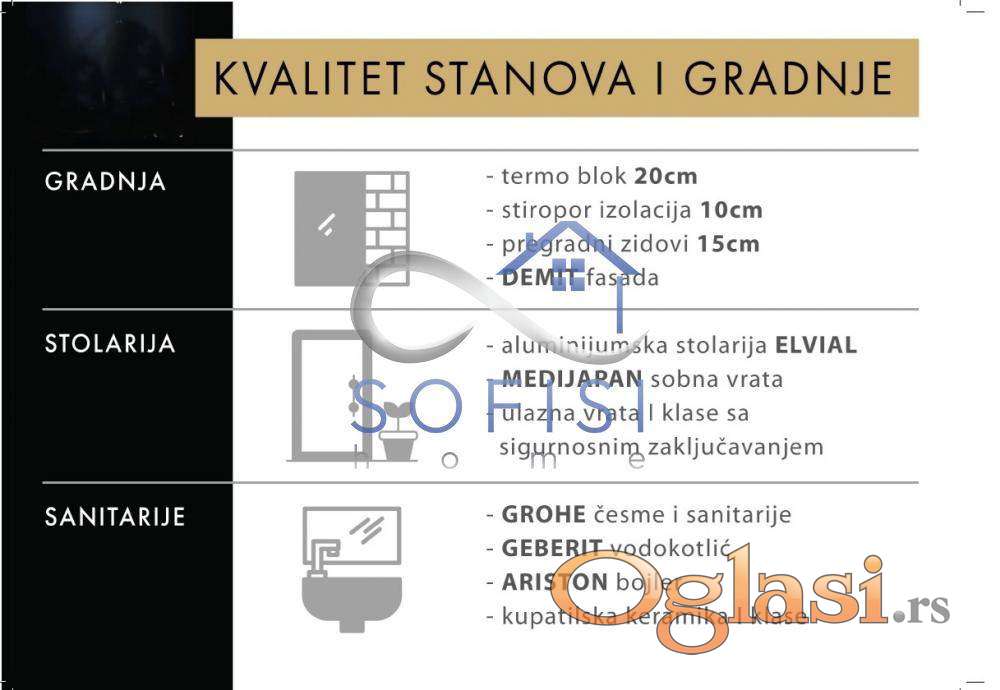 Prestavljamo četvorosoban stan u izgradnji izuzetno funkcionalnog rasporeda. Pozicioniran na I spratu. Prema svojoj poziciji, veličini staklenih površina i spratnosti verovatno jedan od najsvetlijih stanova u objektu. Ovaj stambeni prostor funkcionalnog rasporeda čine veoma komforan dnevni boravak sjedinjen sa trpezarijom i kuhinjom, tri spavaće sobe, kupatilo, zasebno toalet, hodnik i terasa. Sve potrebne informacije o kvalitetu gradnje, raspored prostrija u stana i trenutno stanje na gradilištu videćete u foto prezentaciji oglasa. Napomena, ovo su tek prve dve urbane vile od planiranog čitavog kompleksa sa parkinzima, igralištem za decu, teretanom na otvorenom...