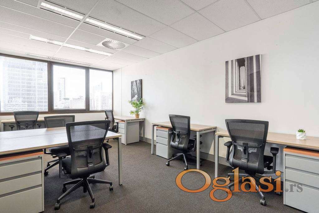 Ova ponuda uključuje privatnu opremljenu kancelariju za 15 osobe i 120 kvadratnih metara zajedničkih prostorija: sale za sastanke, otvoreni coworking prostor, biznis lounge, kafe i recepciju sa kancelarijskom opremom.