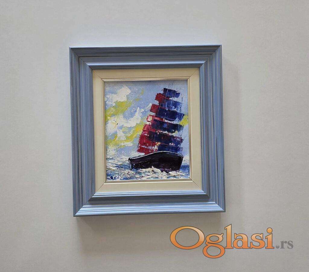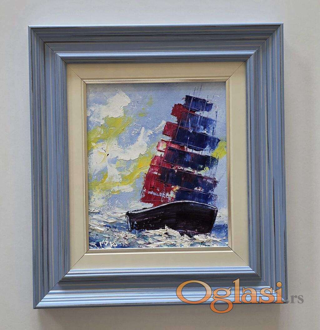 Ulje na platnu Ples na talasima, prelepo umetnicko delo. Slika je uramljena u jako lep ram, dimenzije slike sa ramom 36 x 33. Privatna kolekcija.