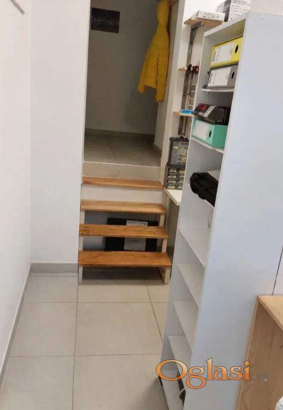Lokal je u dva nivoa ima 12m2 u donjem delu i 8m2 gornji deo(magacin, kancelarija, čajna kuhinja i WC)