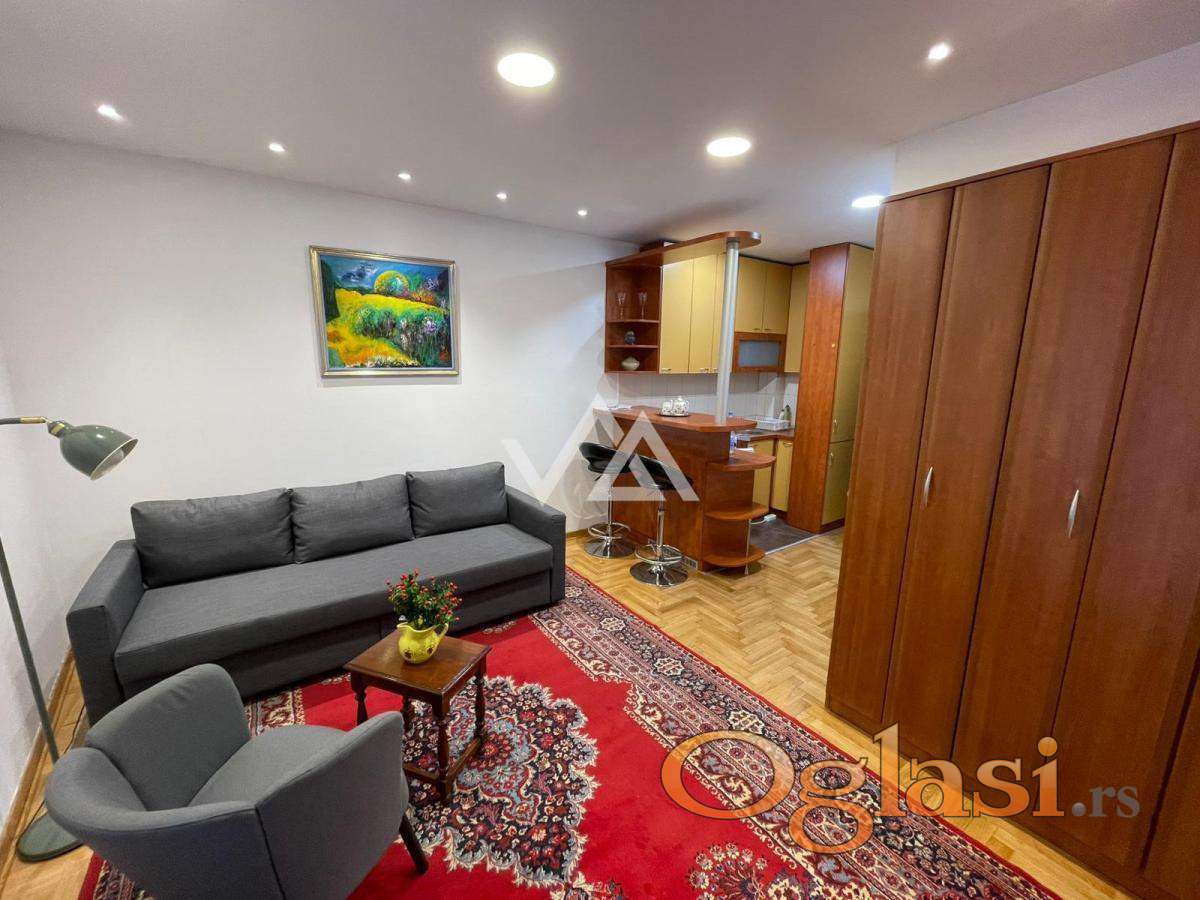 Izdaje se renovirana garsonjera površine 23m², smeštena na visokom prizemlju uredne zgrade u mirnoj ulici Đuke Dinić, na odličnoj lokaciji u neposrednoj blizini Bulevara kralja Aleksandra.