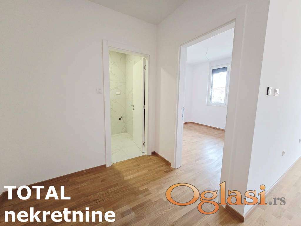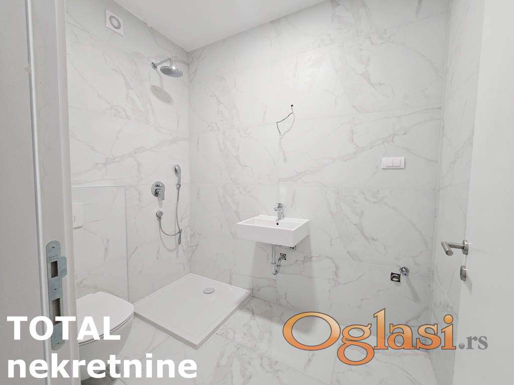 NOV - odmah useljiv dvosoban stan u kvalitetnoj novoj zgradi na Telepu. Stan se nalazi u luksuznom kompleksu zgrada koji poseduje uređeno dvorište pod nazorom, rampom i čuvarom na ulazu u kompleks. Mogućnost kupovine garažnog mesta u suterenu zgrade. Kompleks je građen najkvalitetnijim materijalima i ispunjava najviše standarde modernog života. Grejanje podno na gas sa kalorimetrima, plaćanje po utrošku. Stan se nalazi na drugom spratu, lift, terasa. Kontakt za više informacija 021-427-088, 064/823-6605