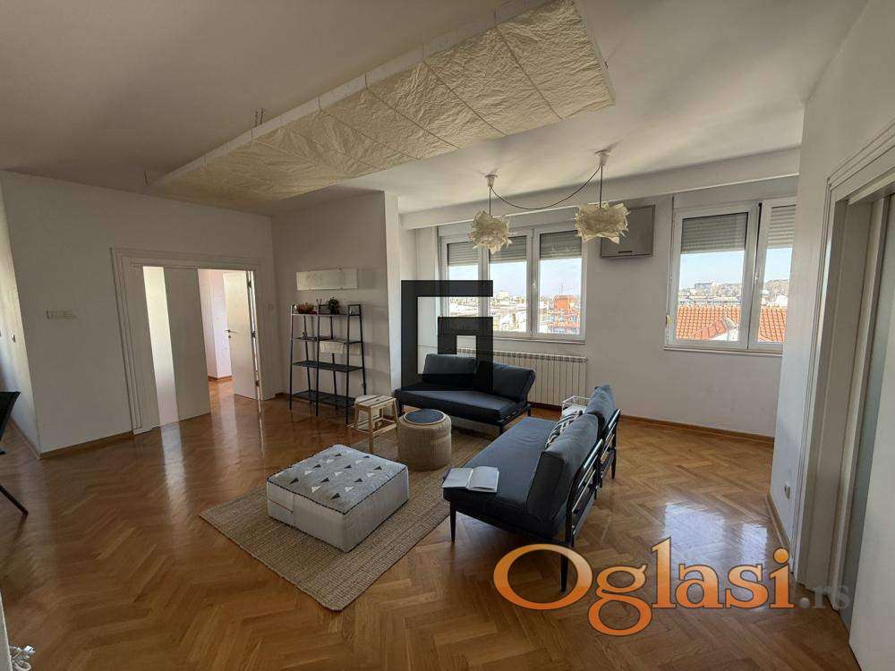 Posebnu vrednost stanu daje impresivna terasa od čak 25 m², koja pruža otvoren panoramski pogled na veliki deo Beograda – od Dorćola do Zvezdarske šume. Zahvaljujući odličnoj orijentaciji i velikim staklenim površinama, stan je izuzetno svetao i prijatan tokom celog dana.