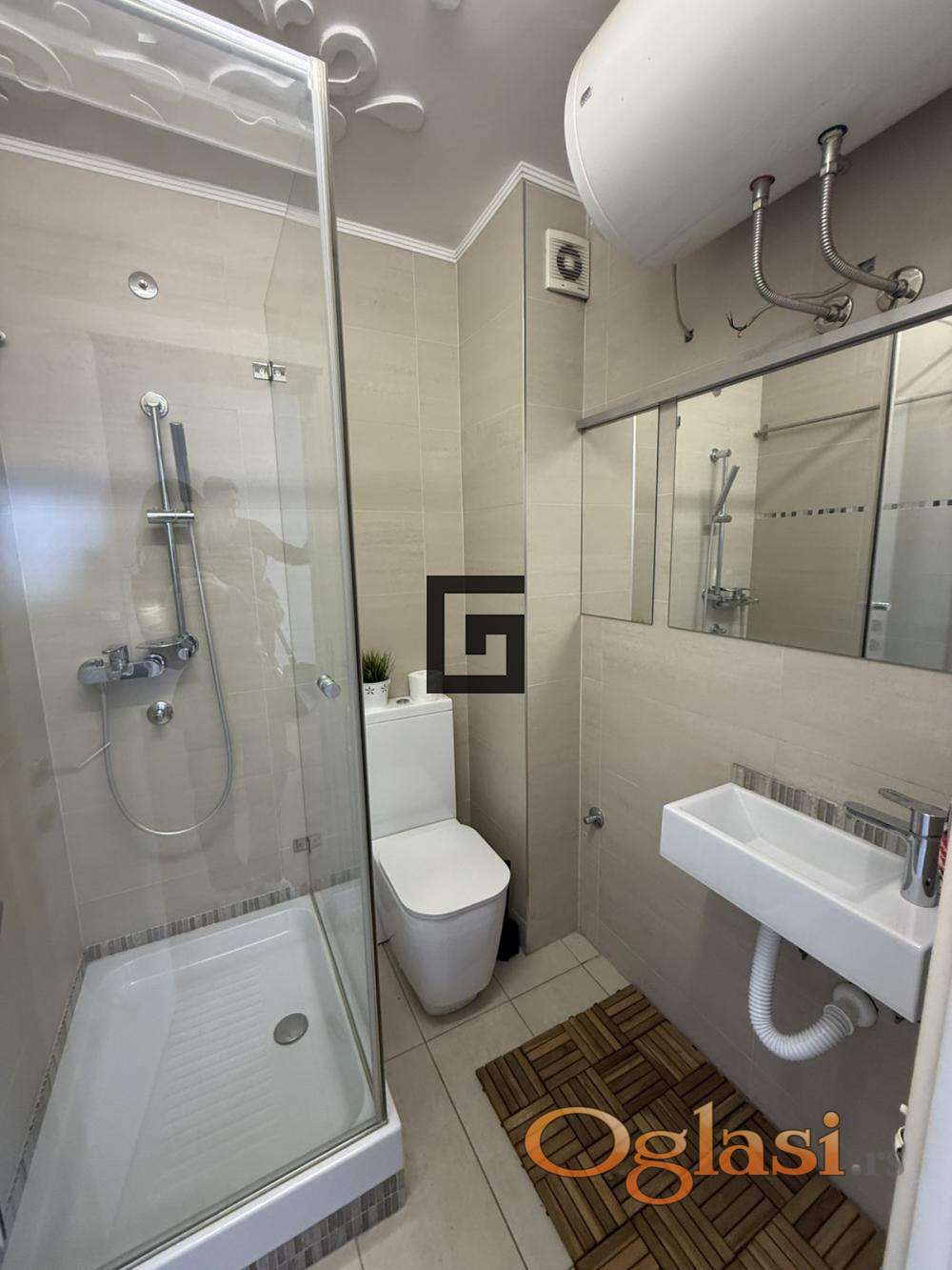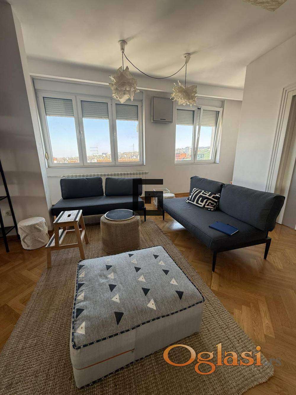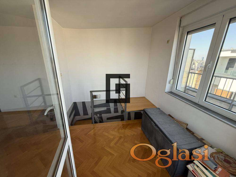 Jedna od najvećih prednosti ovog stana je poseban ulaz na gornjem nivou direktno iz hodnika zgrade, što omogućava da taj deo funkcioniše kao potpuno zasebna stambena jedinica – studio od oko 30 m².