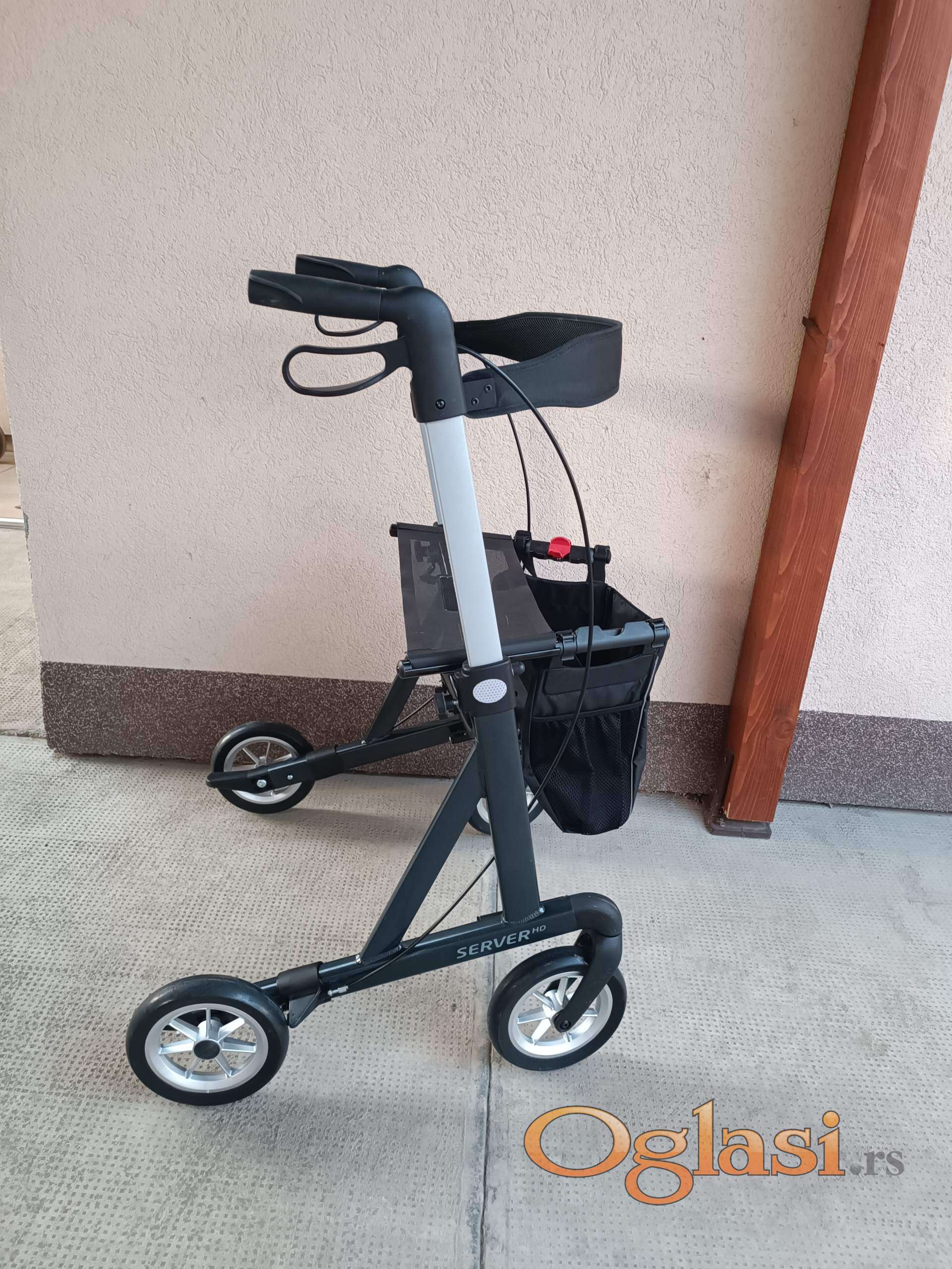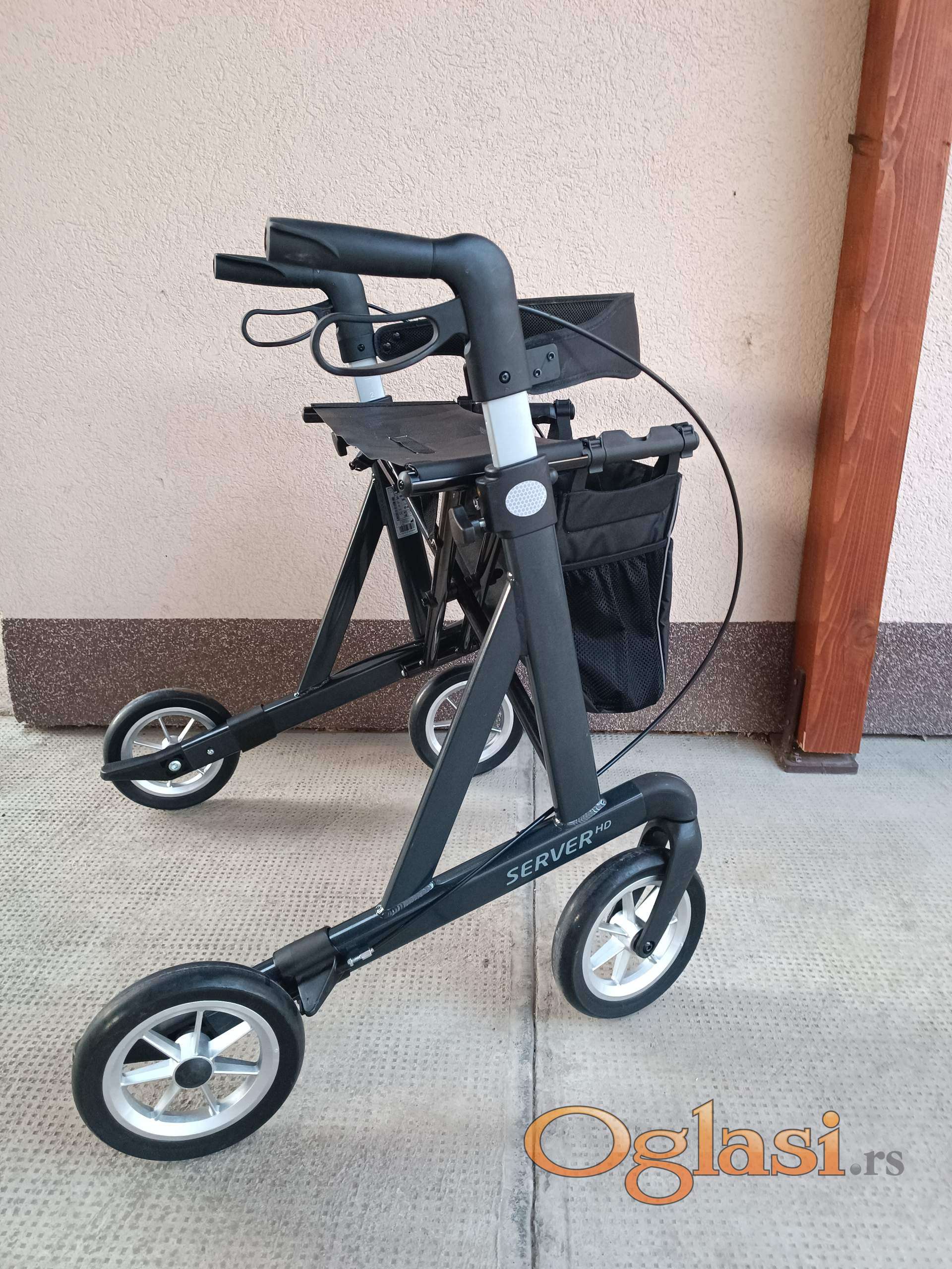 Kvalitetna aluminijumska hodalica sa torbom i naslonom za krupnije osobe. Nosivost do 200kg. Sirina sedalnog dela je 53cm, sirina dole kod tockova je 69cm. Ima dvostepene kocnice. Drugi stepen je sa trajnim blokatorima. Mogucnost podesavanje visine rukohvata. Rucke su anatomskog oblika. Lako se sklapa. Moze licno preuzimanje i proba kod mene a saljem i brzom postom.