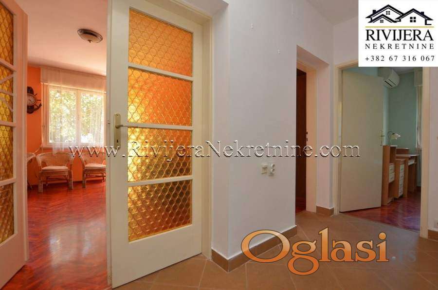 Dvosoban stan na ekskluzivnoj lokaciji setaliste 5 Danica Herceg Novi. Povrsina stana 79 m2, raspored prostorija: ulazni hodnik, kuhinja sa trpezarijom, dnevna soba, dvije spavace sobe, kupatilo, terasa sa pogledom na more. Cijena: 370.000 eura