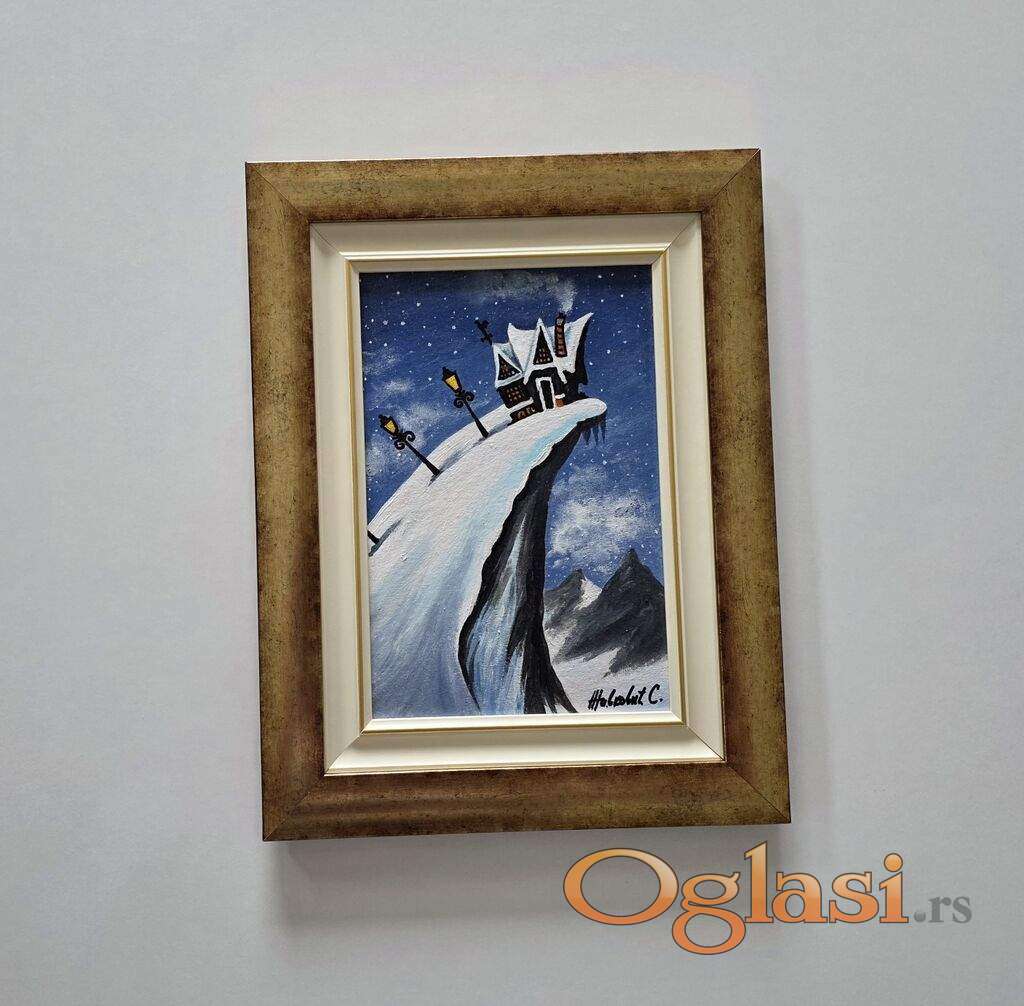 Ulje na platnu Planinska bajka, prelepo umetnicko delo. Slika je uramljena u jako lep ram, dimenzije slike sa ramom 44 x 34. Privatna kolekcija.