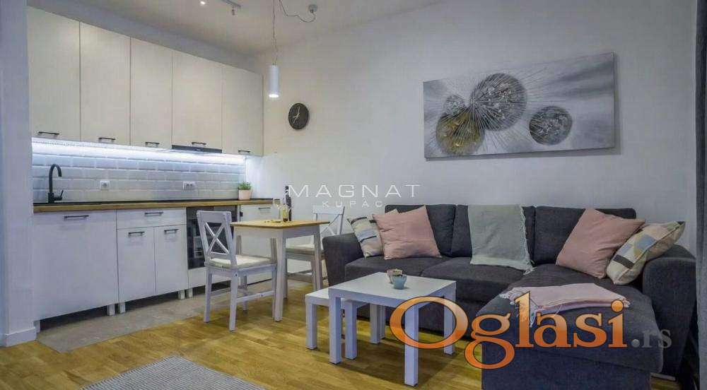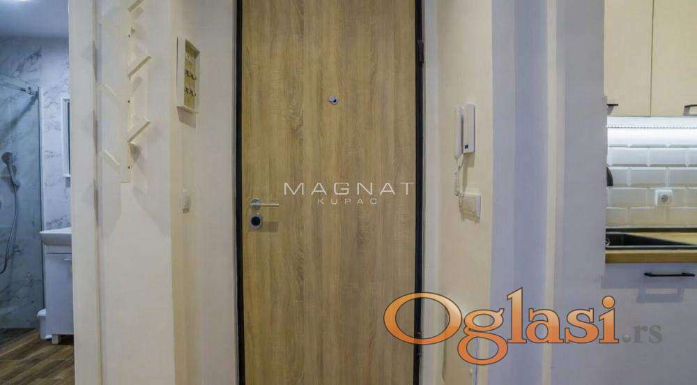 Stan se nalazi u novoj zgradi, sa obezbeđenjem i video nadzorom. Kompletno je namešten, opremljen belom tehnikom. stan se izdaje od aprila na duži period......18 Oznaka na mapi pokazuje deo grada, ne i tačan položaj zgrade. Posrednička naknada 50%