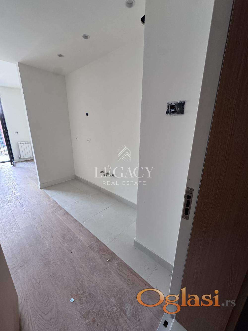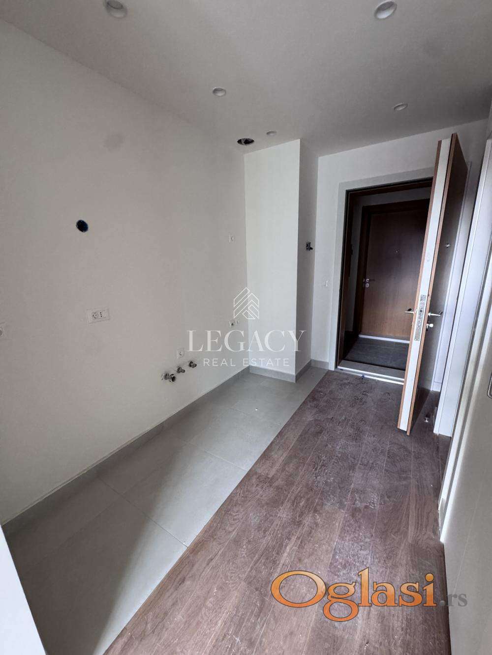 Funkcionalan raspored obuhvata ulazni hodnik sa predviđenim prostorom za kuhinju, kombinovanu sobu, vešernicu, kupatilo i terasu. Zahvaljujući velikim prozorima, stan je svetao i prijatan za boravak.