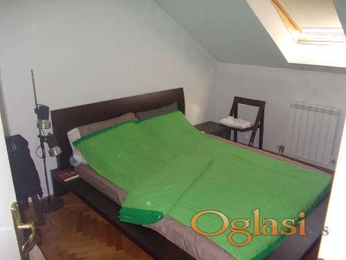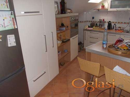 Kompletno opremljeno, klimatizovano potkrovlje, sa dva mokra čvora i tri spavaće sobe. Useljiv od 01.05.
