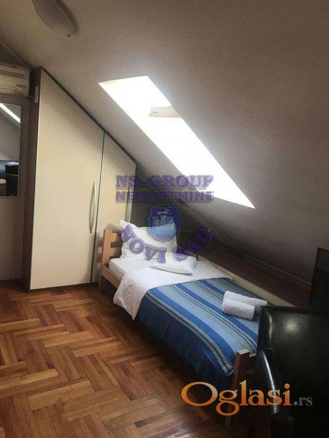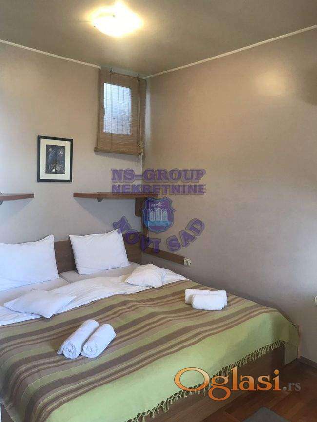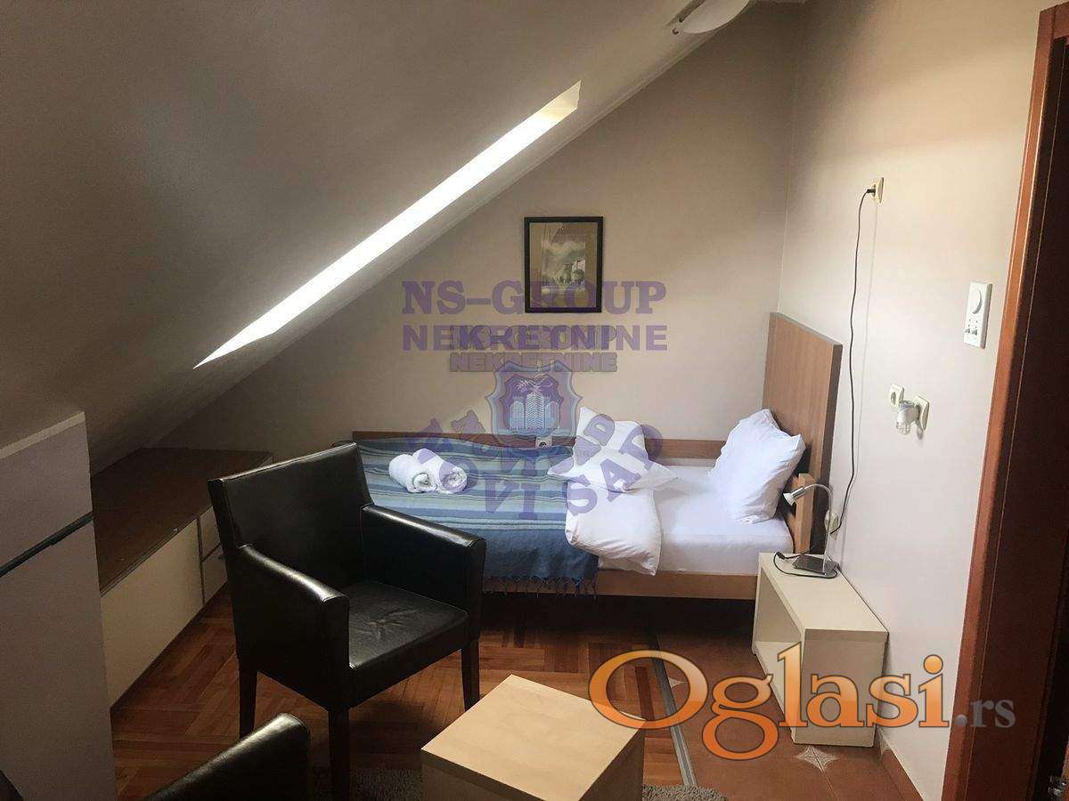 Jedinstvena ponuda. Posao izdavanja studio apartmana na odličnoj lokaciji- Cara Dušana. U stvarnosti duplex. U donjem delu prostorija sa uvučenom kuhinjom i kupatilom. Može poslužiti kao neka vrsta kancelarije. Gornji deo je iz dva nivoa. Dolazi se regularnim stepenicama iz hodnika zgrade, a može i iz donje prostorije. Na prvom nivou: trokrevetni apartman sa kupatilom, i studio apartman sa francuskim ležajem, kuhinjom i trpezarijom i kupatilom. Na drugom nivou: dva trokrevetna studio apartmana sa svojim sanitarnim čvorovima. Oba nivoa su pod kosinama. Jako lepo uredjen hodnik u zgradi. Što se tiče apartmana, nema apsolutno nikakvih ulaganja. Sama zgrada fenomenalno održavana. Lokacijski je i više nego odlično mesto za izdavanje. Sve što je neophodno nalazi se u blizini zgrade. Do starog Centra Novog Sada vam treba 7-10 minuta autom. Kej je takodje na nekoliko minuta udaljen od zgrade. Stvarno jedinstveno na tržištu. Vredi i treba videti uživo. Pozovite nas za više informacija!