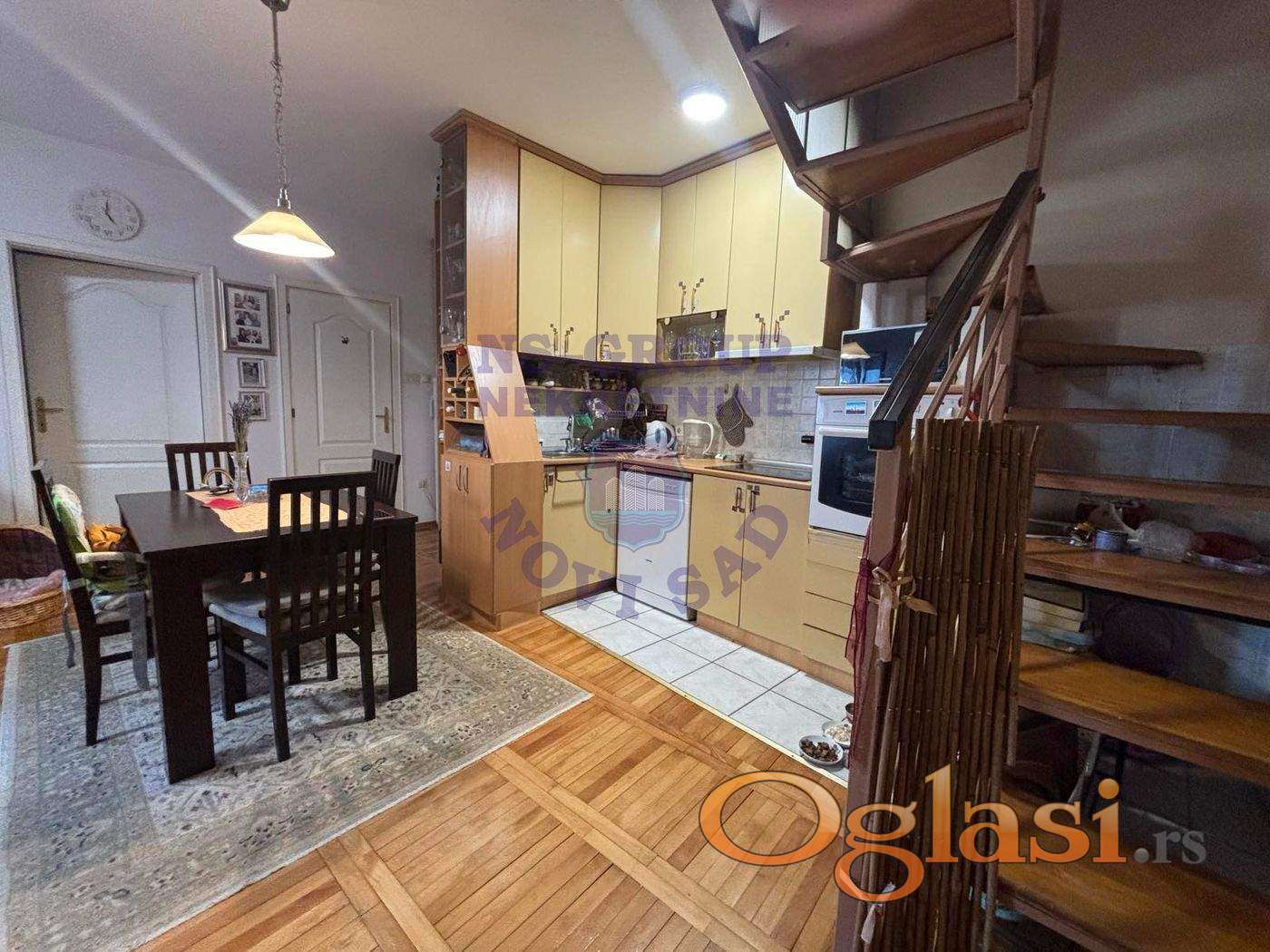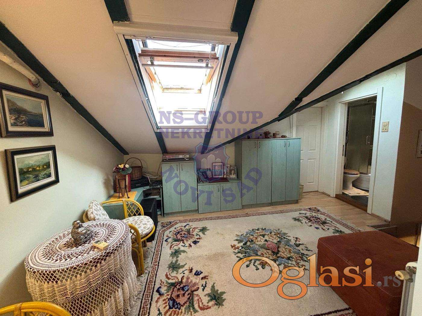 Predstavljamo Vam petosoban stan u srcu Novog Sada. U pešačkoj zoni tačno preko puta Jovine gimnazije ušuškana je zgrada sa samo 4 stana u kojoj se nalazi ova nekretnina. Stan je na minut od Jovinog spomenika,Riblje pijace,Srpskog Narodnog Pozorišta,Temerinske ulice i svih ostalih mesta koji se nalaze u samom centru Novog Sada. Zgrada je uvučena sa terase čuje se samo mir i tišina zbog same pozicije stana i zgrade. Zgrada je zidana 2004. godine. Stan se sastoji iz dve etaže,na prvoj etaži nalazi se dnevni boravak sa kuhinjom,jedna velika spavaća soba,kupatilo i terasa. Stan je izuzetno svetao,prozračan,prostorije su komforne,a sa terase se čuje samo mir i tišina. Na drugoj etaži nalaze se 3 spavaće sobe pod kosinama,ali u sve tri sobe može da stane francuski ležaj. Vlasnici nikada nisu imali problema sa prokišnjavanjem,svaki krovni prozor je Velux. Sprat takođe poseduje dnevni boravak i odvojeno kupatilo. Stan poseduje posebne podrumske prostorije. Zahteva minimalna ulaganja. BRUTO POVRŠINA STANA JE 141M2 Ukoliko imate još pitanja o nekretnini u srcu Novog Sada,kontaktirajte naše agente prodaje!