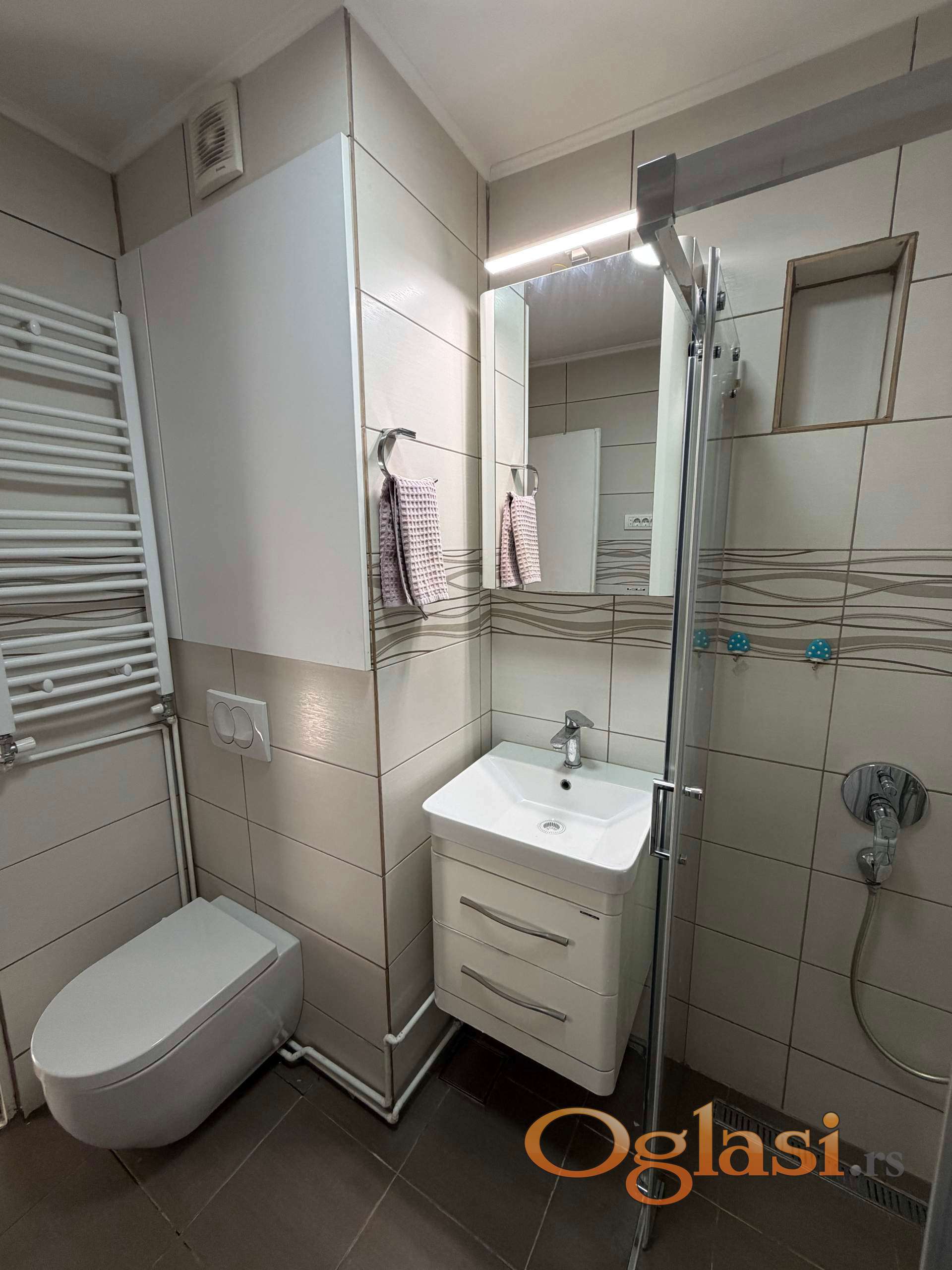 Grejanje je centralno gradsko, sa protočnom toplom vodom.