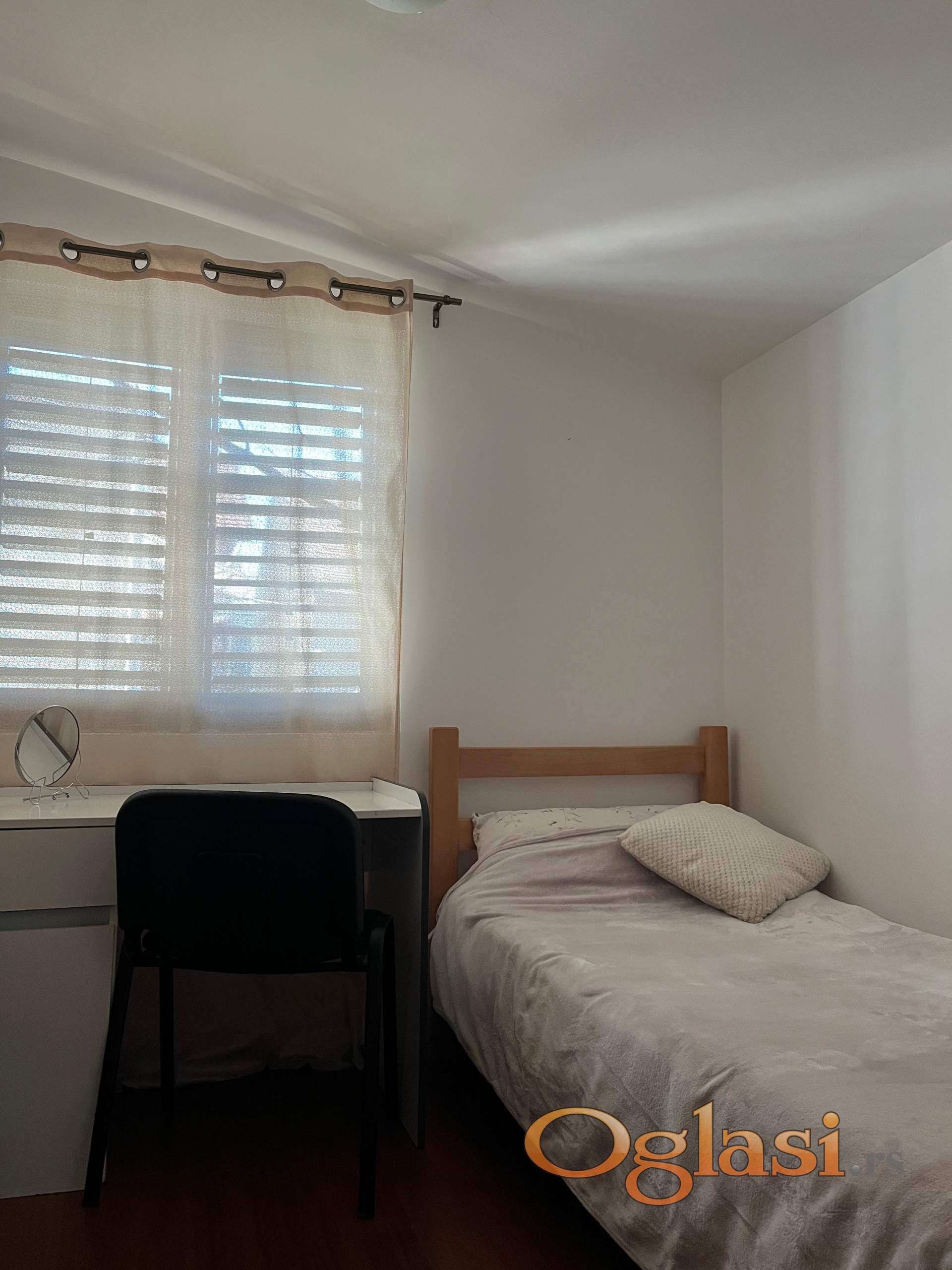 Soba u centru grada na Dorćolu za studentkinju. Stan ima tri zasebne sobe u kojima borave studentkinje tako da ova treća soba se izdaje takođe studentkinji.Računi su relativno mali jer se plaća četvrtina ukupnog iznosa računa.Stan se nalazi u mirnom delu grada i ima dvorište koje može da se koristi za odmor i uživanje. Zajedničko je kupatilo i kuhinja.