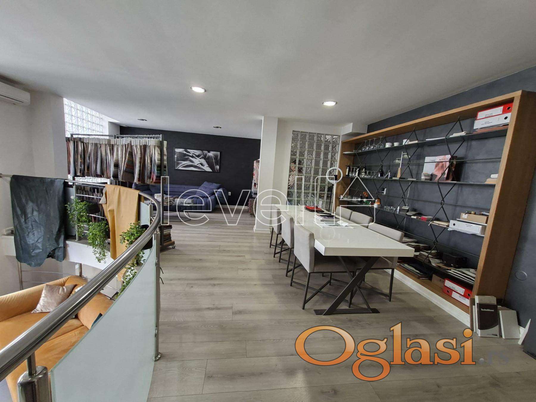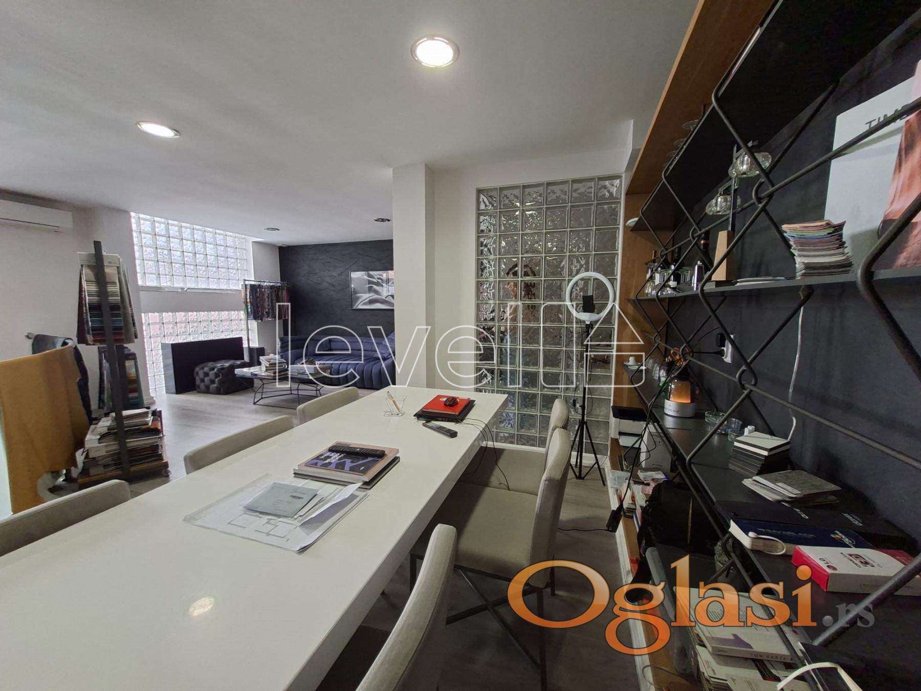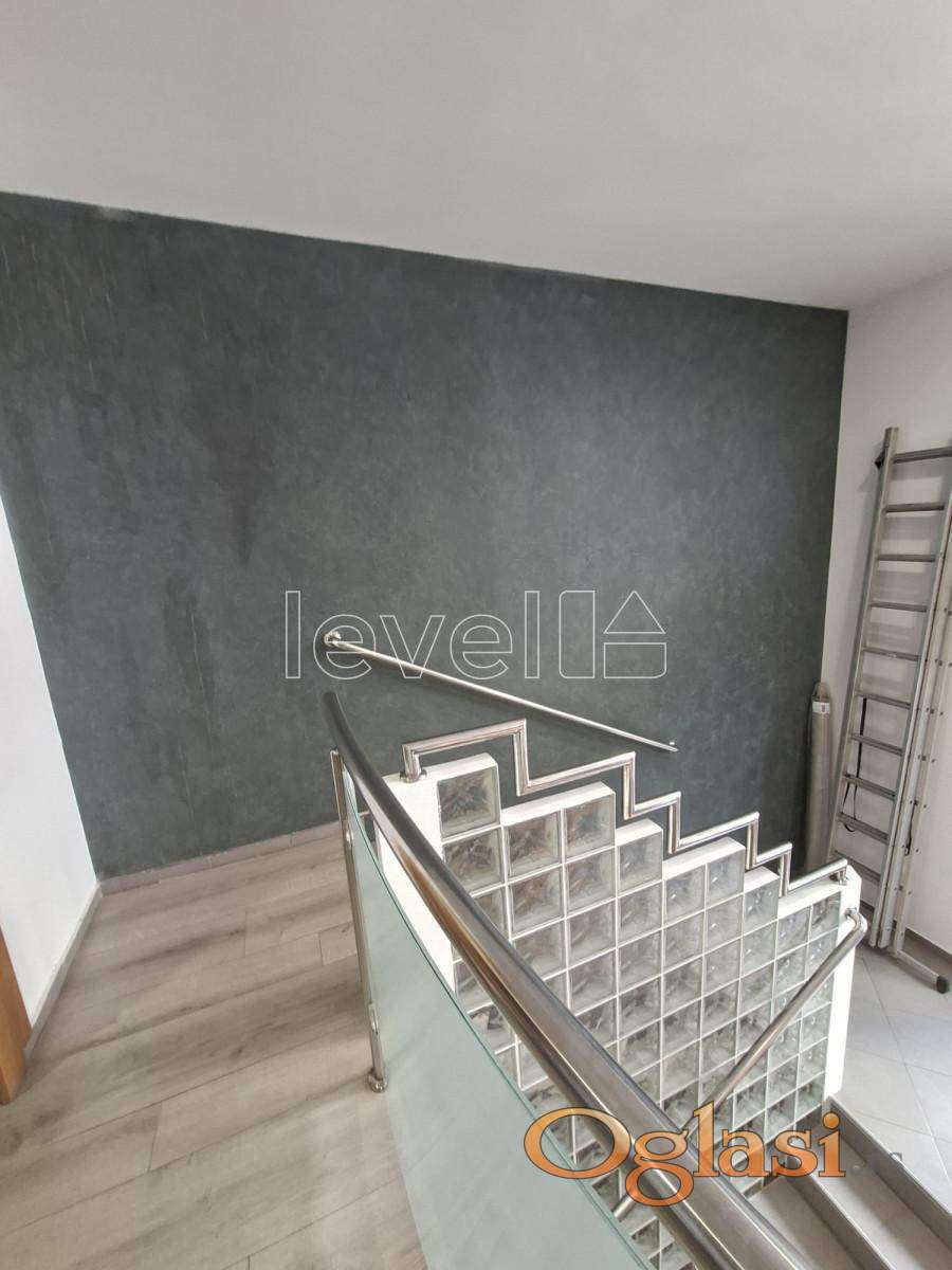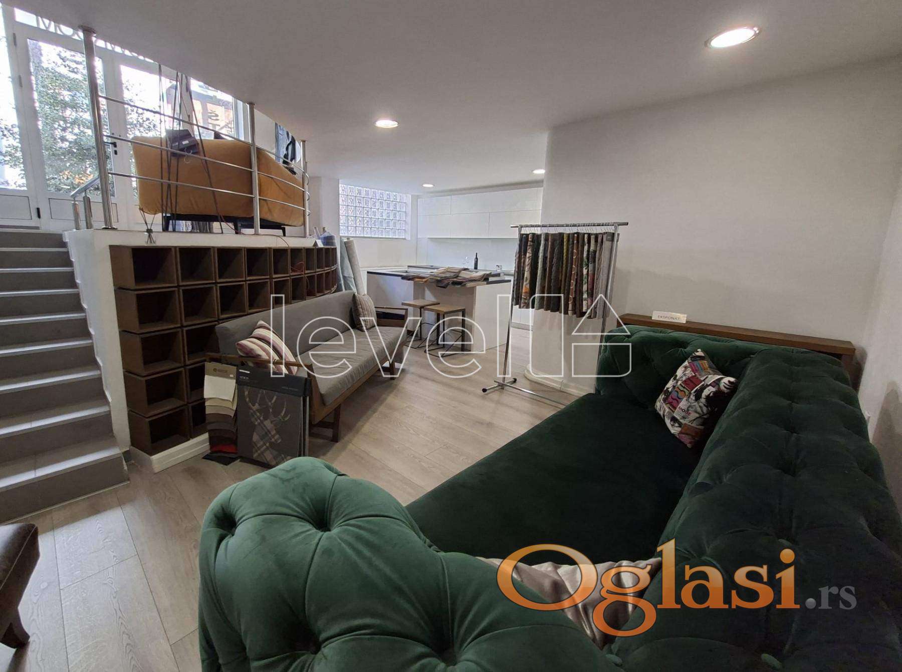 Prostor je organizovan u dva nivoa i obiluje prirodnim svetlom. Gornji nivo je uknjižen, dok donji nivo površine oko 50 m² nije zvanično uknjižen, ali je potpuno funkcionalan, osvetljen i praktično iskorišćen.
