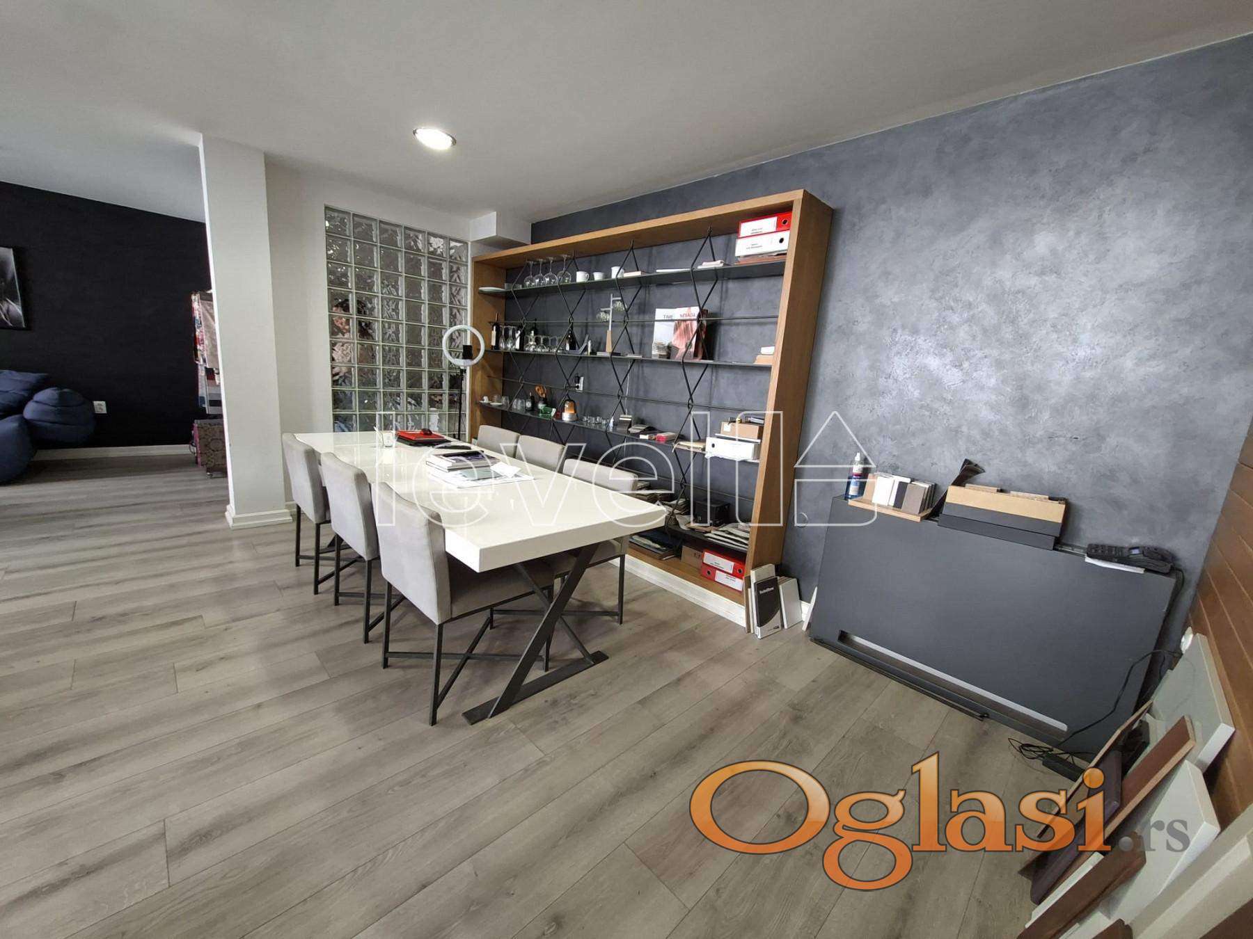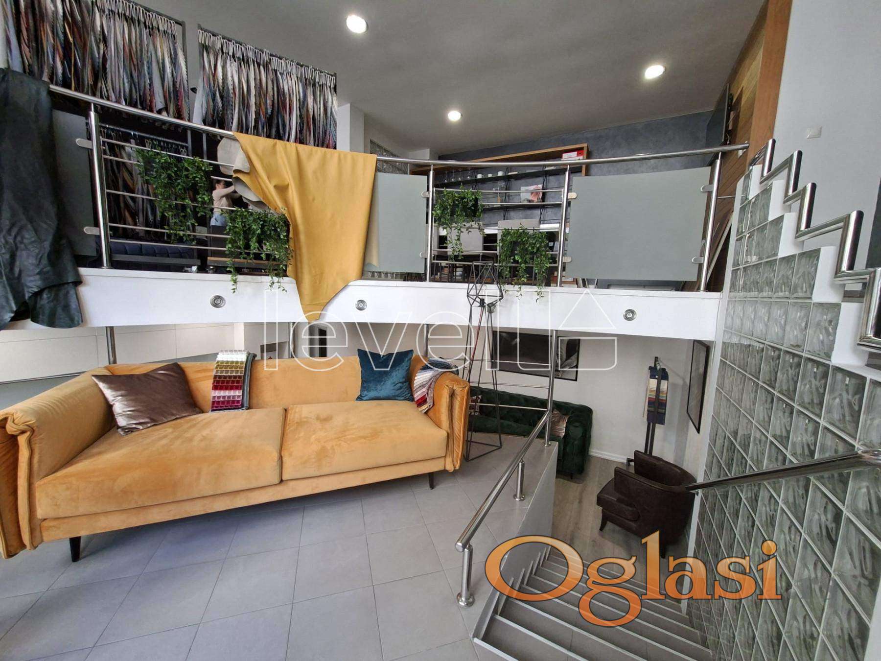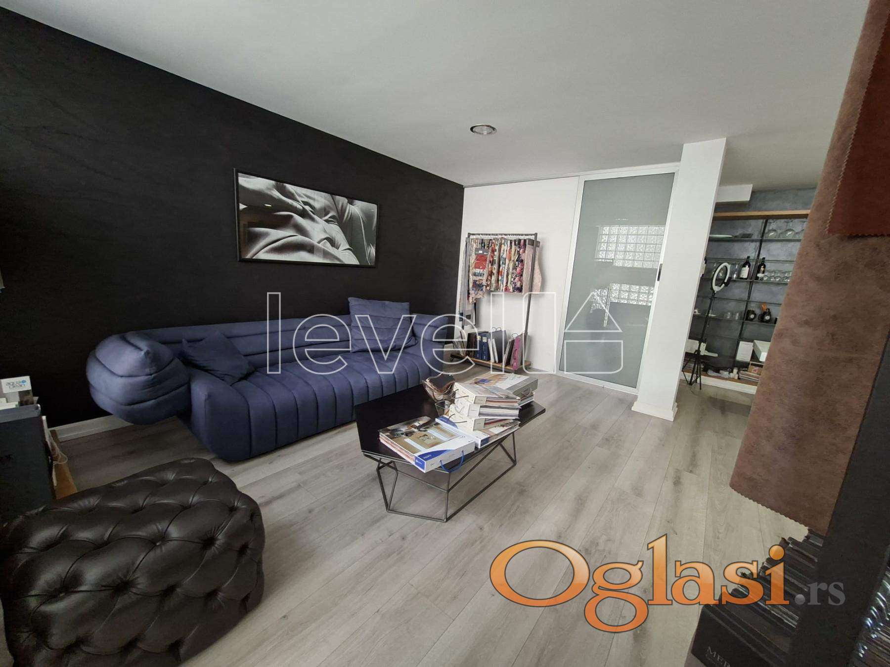Prostor je organizovan u dva nivoa i obiluje prirodnim svetlom. Gornji nivo je uknjižen, dok donji nivo površine oko 50 m² nije zvanično uknjižen, ali je potpuno funkcionalan, osvetljen i praktično iskorišćen.
