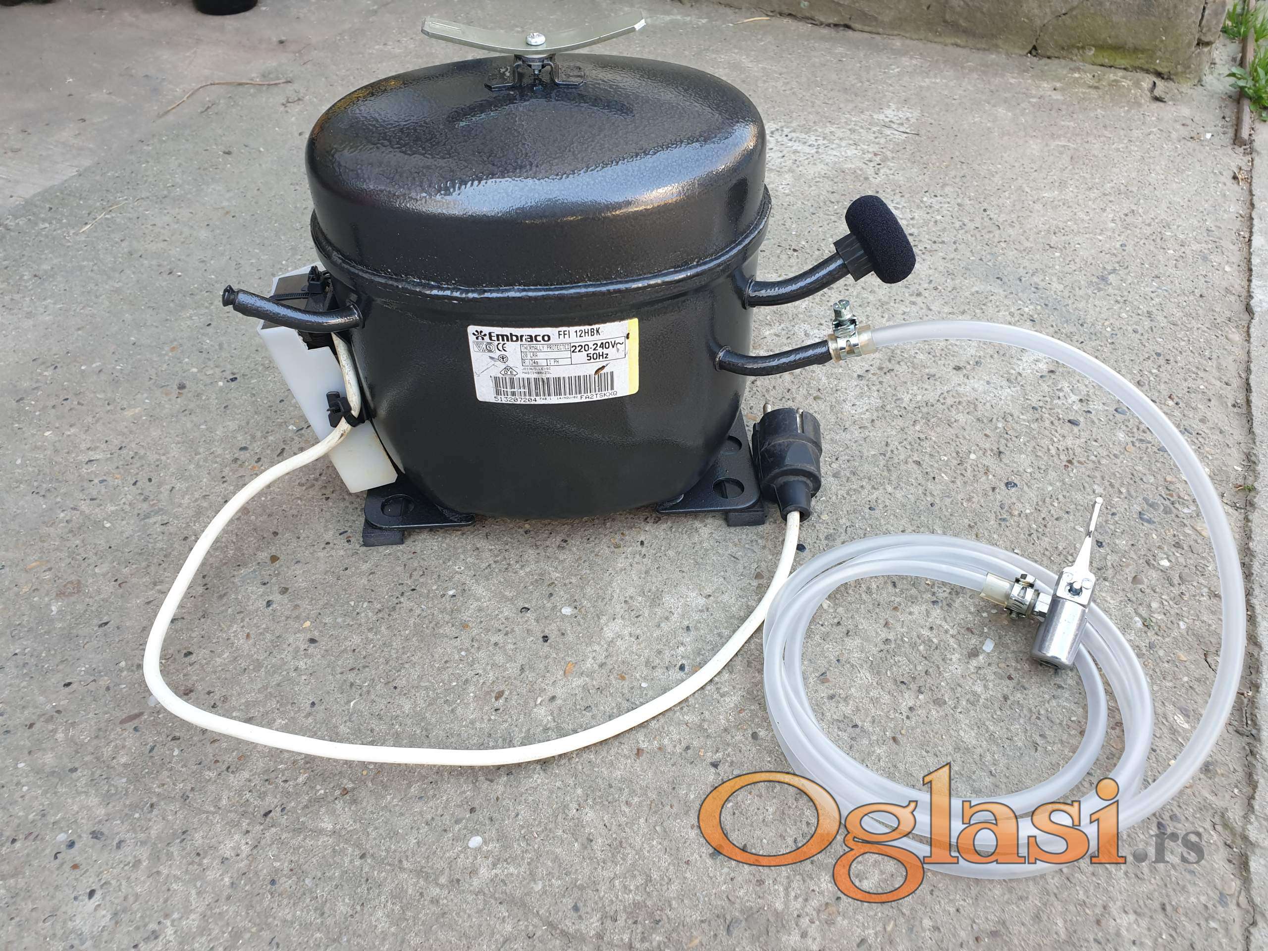 Kompresor 220V/175W za duvanje guma na automobilima,motorima biciklima i ostalo, duvanje lopti,balona.Kompresor je uljni i ima bimetalnu zastitu.Uz kompresor ide oko 2m creva sa priključkom za auto ventile.Cena 50 eura.Kliknuti na veliku sliku radi prikaza u punoj velicini.Mozete videti sve