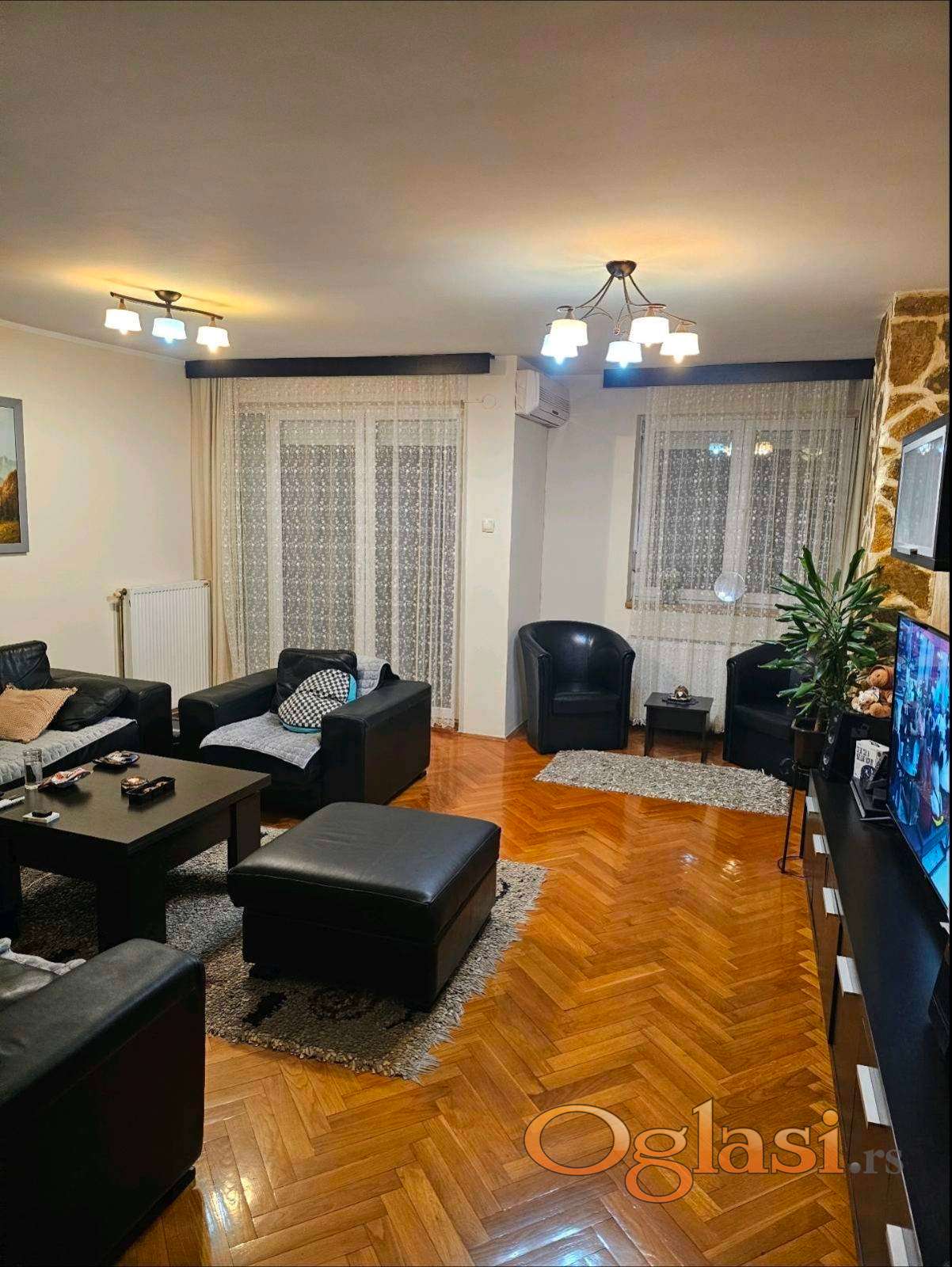 U PONUDI ZA IZDAVANJE ČETVOROSOBAN STAN POTPUNO OPREMLJEN, NA DOBROJ LOKACIJI. STAN JE USELJIV OD 01.04.2026. NA DONJEM NIVOU DNEVNA SOBA SA TRPEZARIJOM I KUHINJOM, SPAVAĆA SOBA, KUPATILO I TERASA, A TRI SPAVACE SOBE I KUPATILO U GORNJEM NIVOU. ZAISTA VREDNO SVAKOG RAZGLEDANJA.