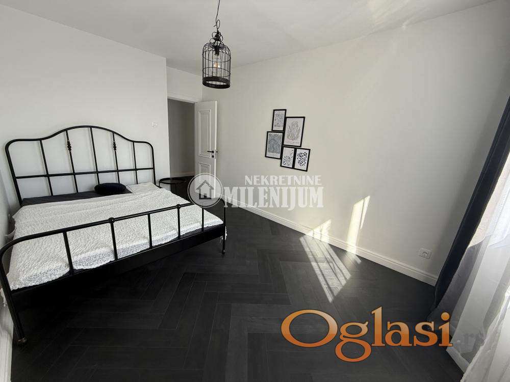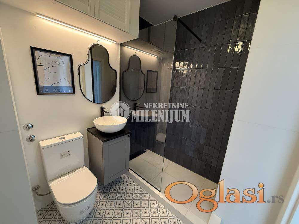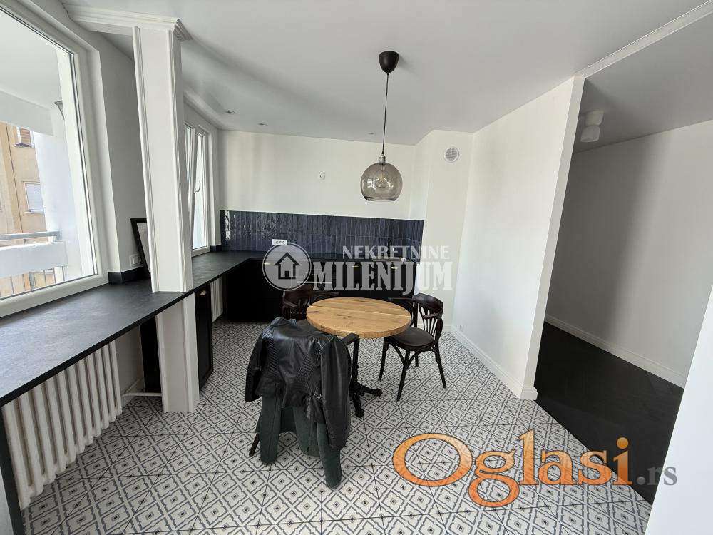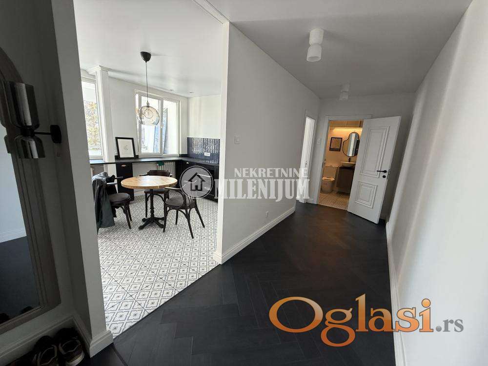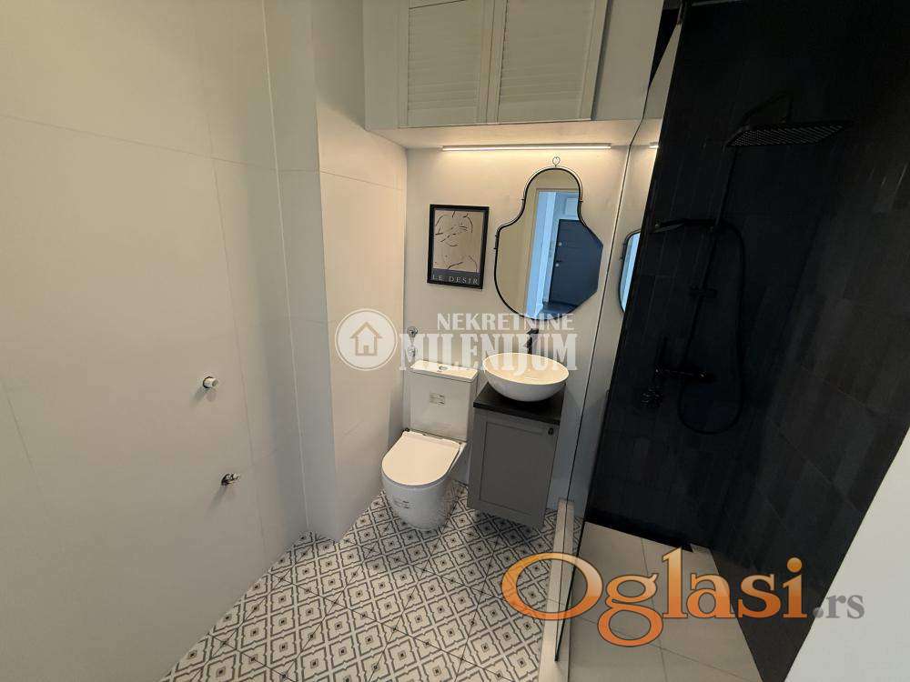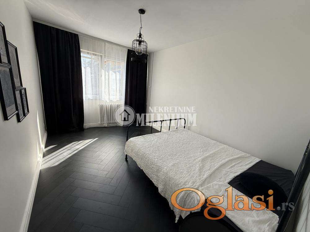 Komforan dvosoban stan, potpuno i kvalitetno renoviran sa posebnim akcentom na moderan dizajn i funkcionalnost prostora.