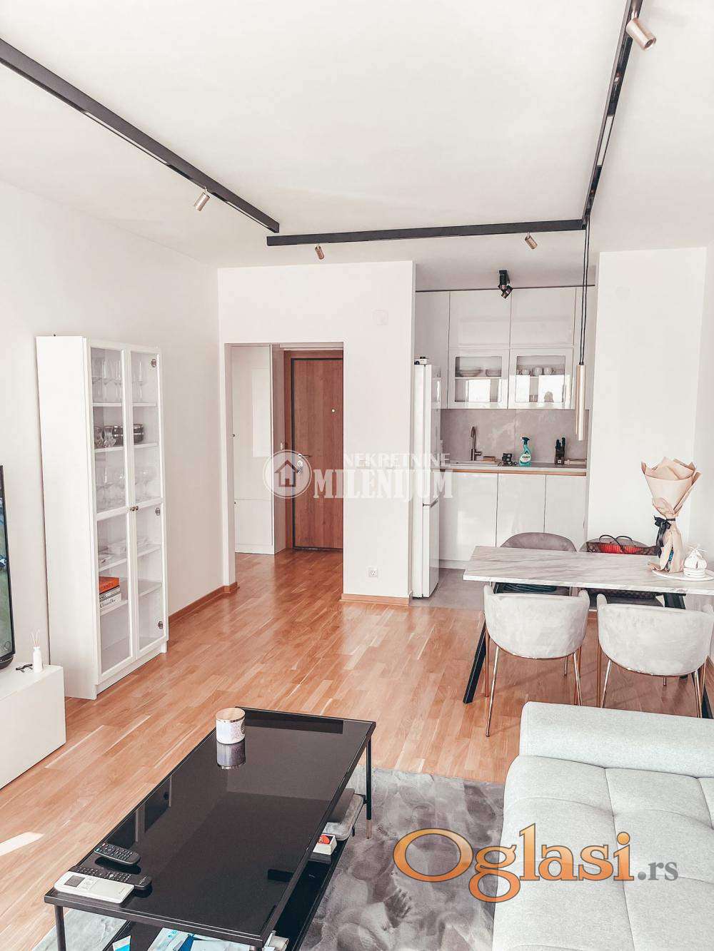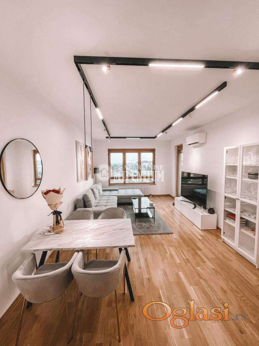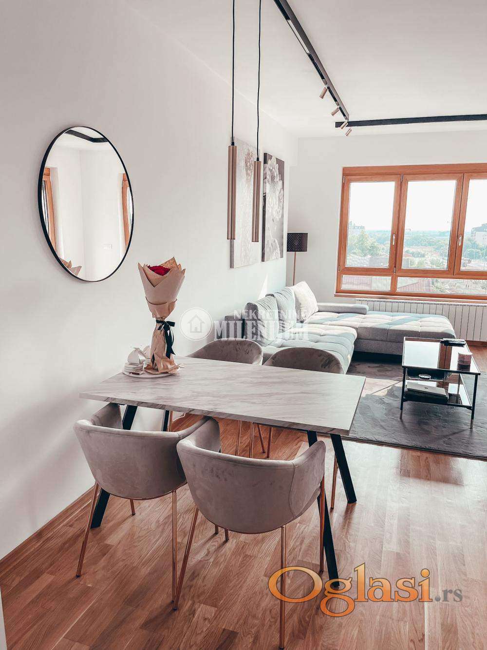 Stan je kompletno opremljen kvalitetnim i modernim nameštajem, pažljivo biranim kako bi prostor bio funkcionalan i estetski vrlo prijatan.