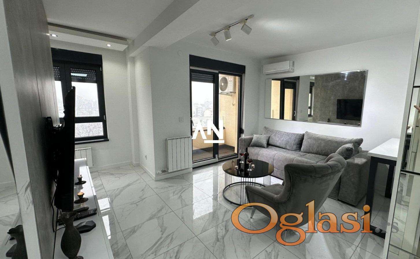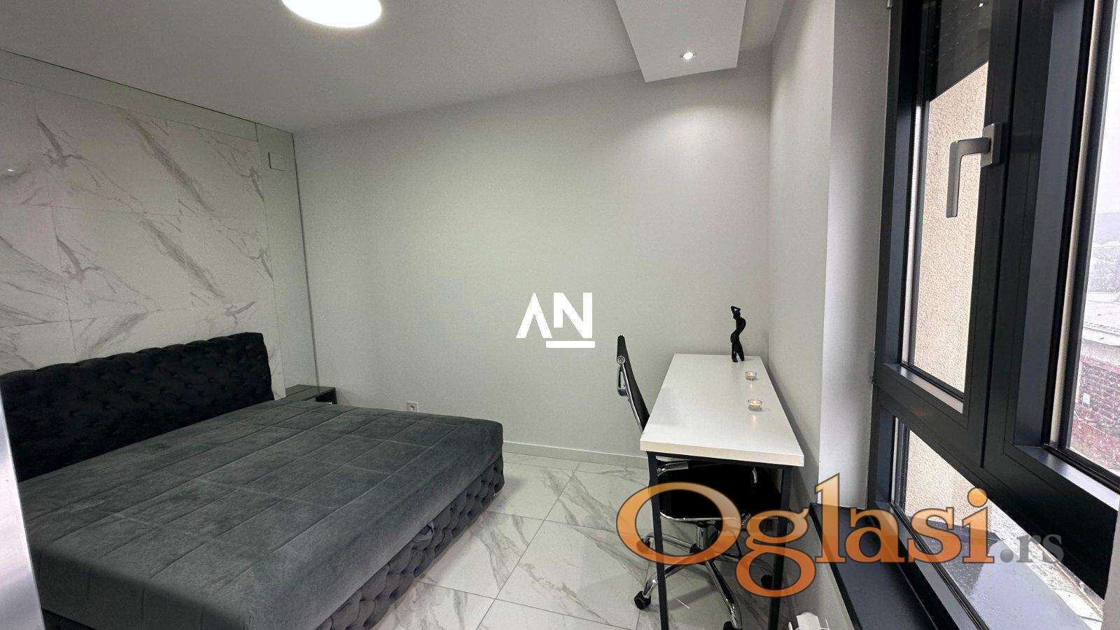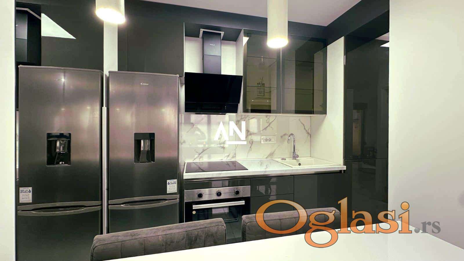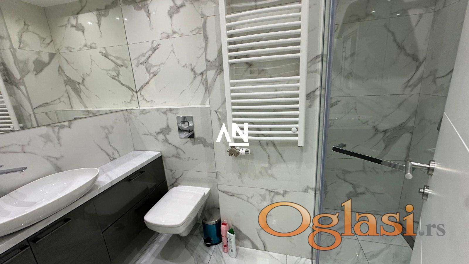 U luksuznoj zgradi novije gradnje, u srcu grada ali u mirnom okruženju, izdaje se potpuno opremljen stan modernog i sofisticiranog dizajna.