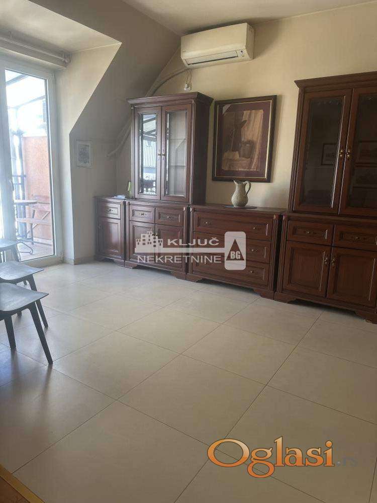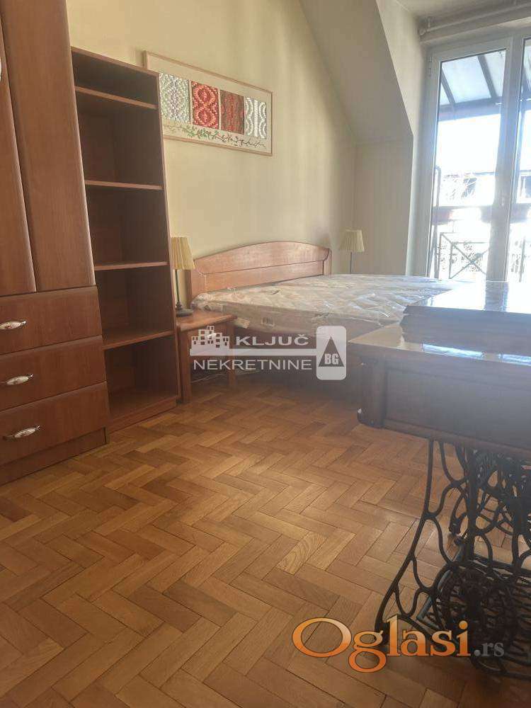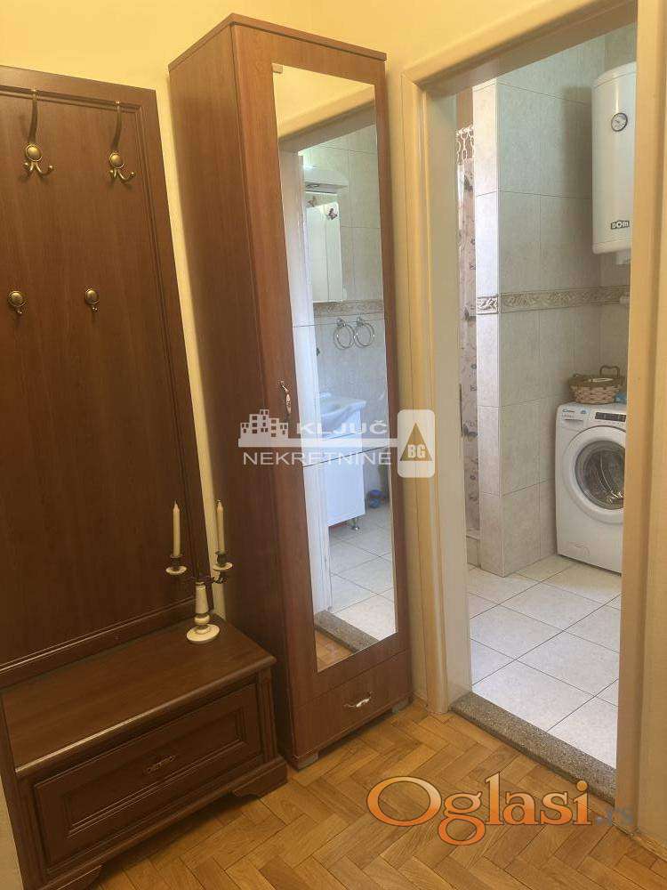 Izdaje se kompletno namešten dvosoban stan u Dubljanskoj ulici, na odličnoj lokaciji u blizini Hrama Svetog Save. Stan se nalazi u mirnoj ulici i veoma je svetao.Sastoji se od prostranog dnevnog boravka sa trpezarijom i kuhinjom, ostavom, odvojene spavaće sobe i velikog kupatila sa prirodnom ventilacijom. Posebnu prednost stana predstavlja terasa koja se proteže duž celog stana. Racuni za infostan i struju iznose 15000 dinara.Stan je kompletno opremljen i izdaje se na duži vremenski period. ,