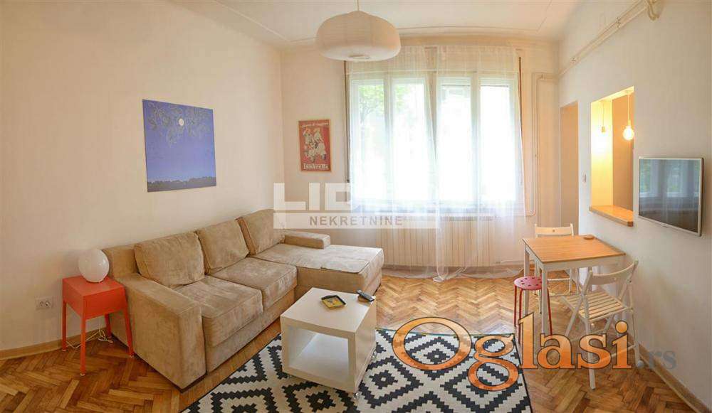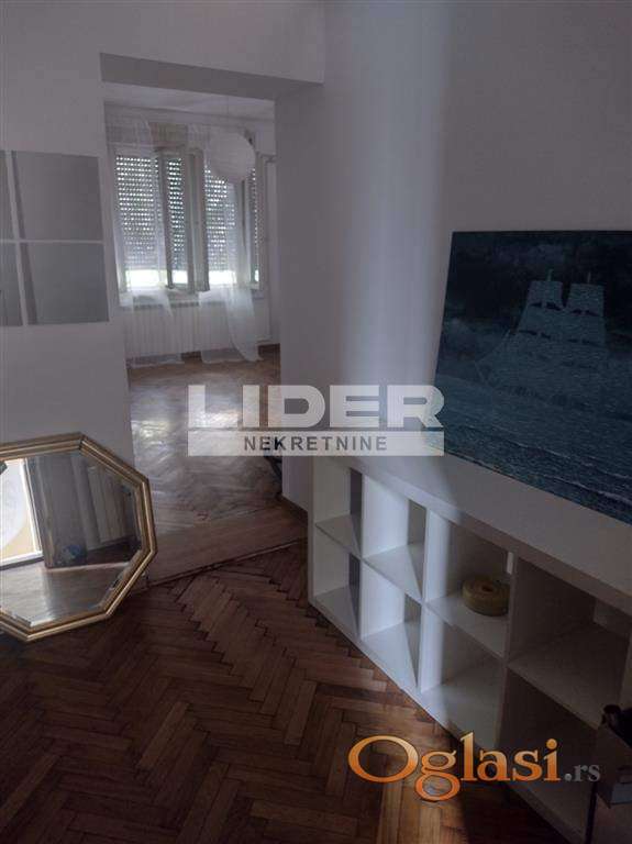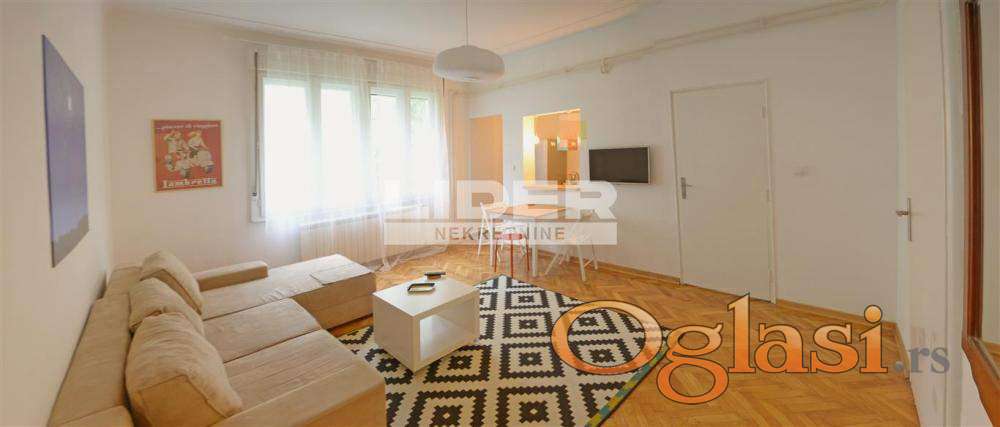 Salonski stan na drugom spratu. Stan ima dva ulaza i pre 10 godina je podeljen na dve jedinice (44m2 +23m2) za izdavanje i tada je kompletno renoviran. Veći deo ima prostranu dnevnu sobu, kuhinju, kupatilo, lepu svetlu spavaću sobu iz koje se izlazi na terasu.