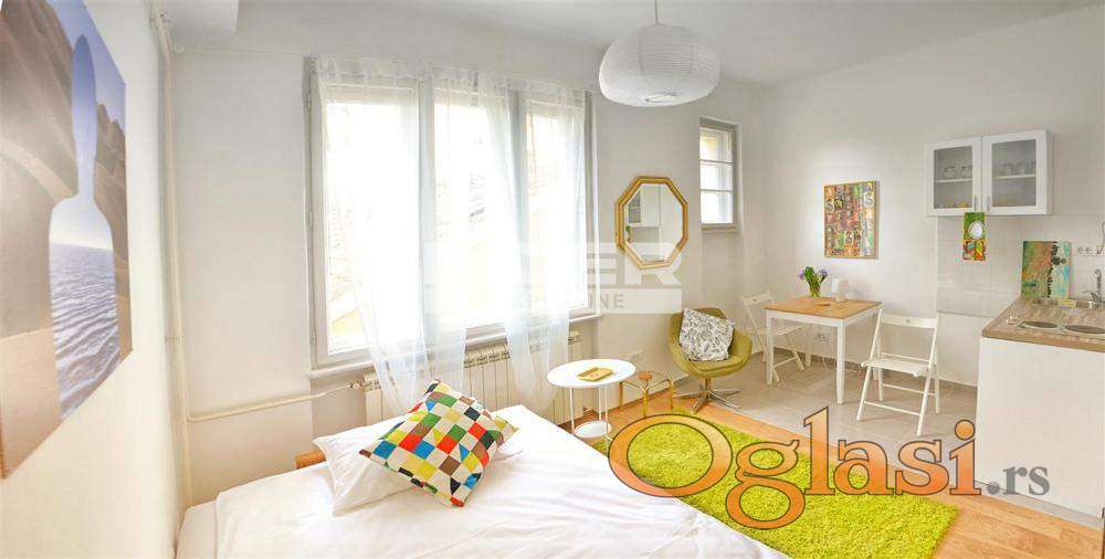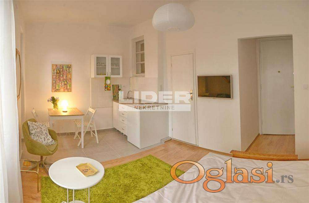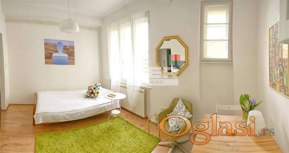 Manji deo je garsonjera, koja ima manju kuhinju. Po potrebi stanove je lako spojiti u jednu kao što je bilo prbobitno stanje. Stan je idealan za različite namene. agencijska provizija 2%