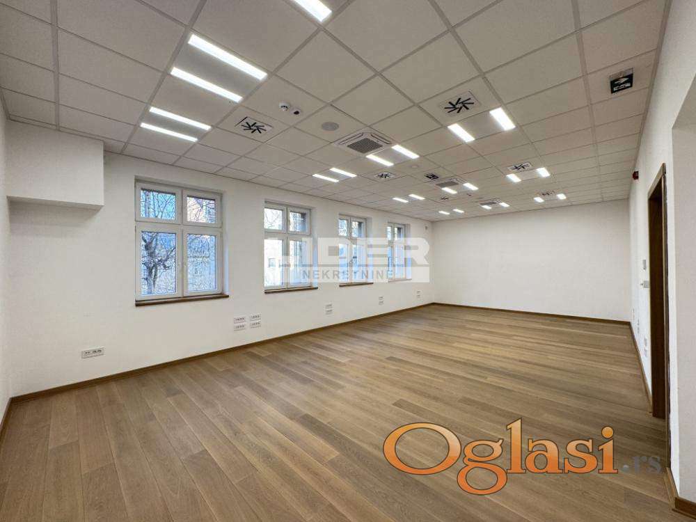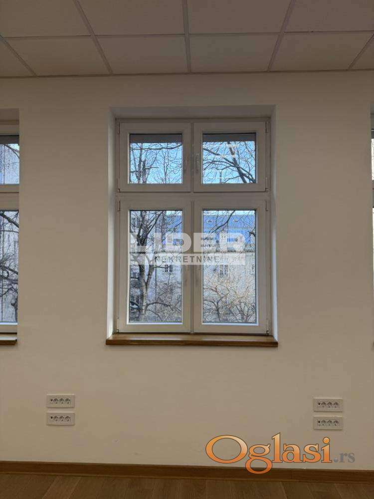 Na centralnoj lokaciji u Beogradu izdaje se kompletno renoviran prostor veličine 60 m2. Poseduje prostrane prozore sa obiljem svetla i ujedno je zaštićen od gradske buke, što ga čini odličnim izborom za različite poslovne delatnosti.