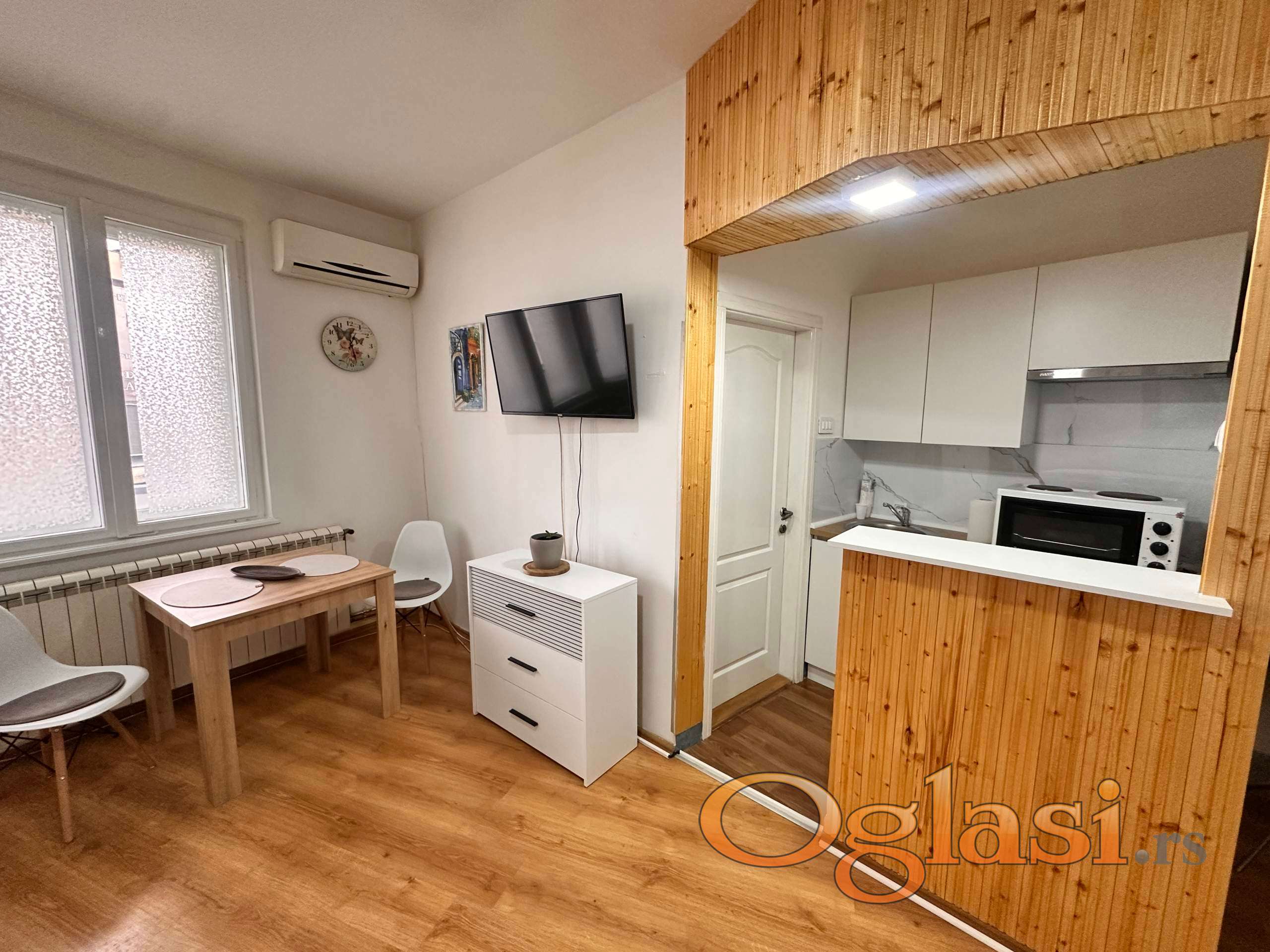 Stan ima 32 m² , terasu, centralno grejanje i klimu. Potpuno je namešten, sa novim nameštajem i novom kuhinjom.
