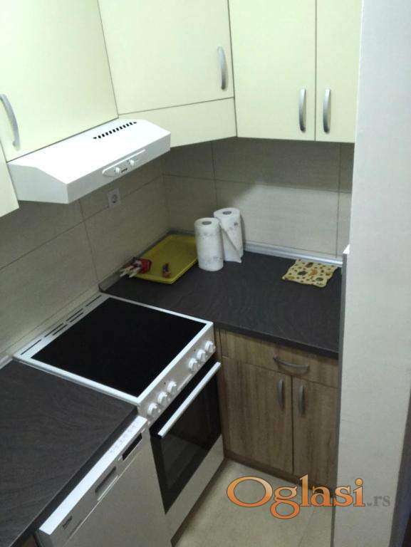 Jednoiposoban stan se nalazi u mirnom okruzenju borove sume, u slepoj ulici uz crkvu a na samo 5 minuta laganog hoda do jezera i velikih marketa (Maxi i Lidl).