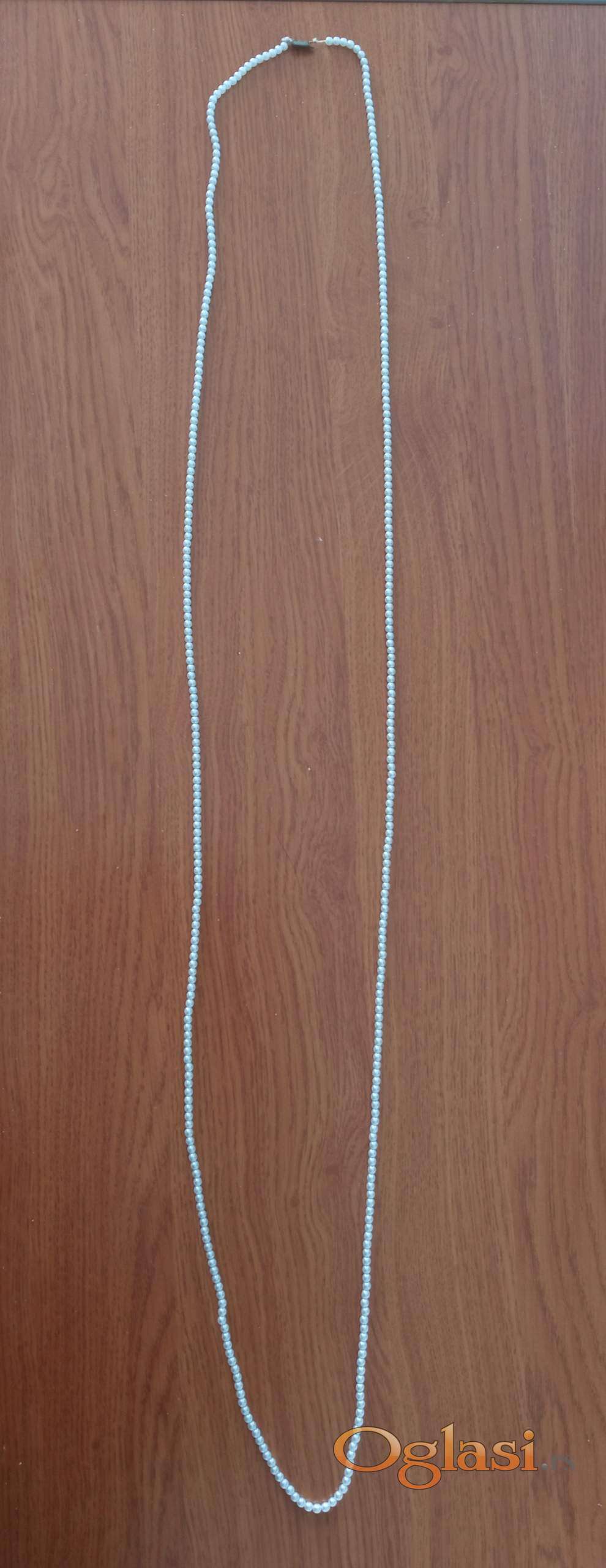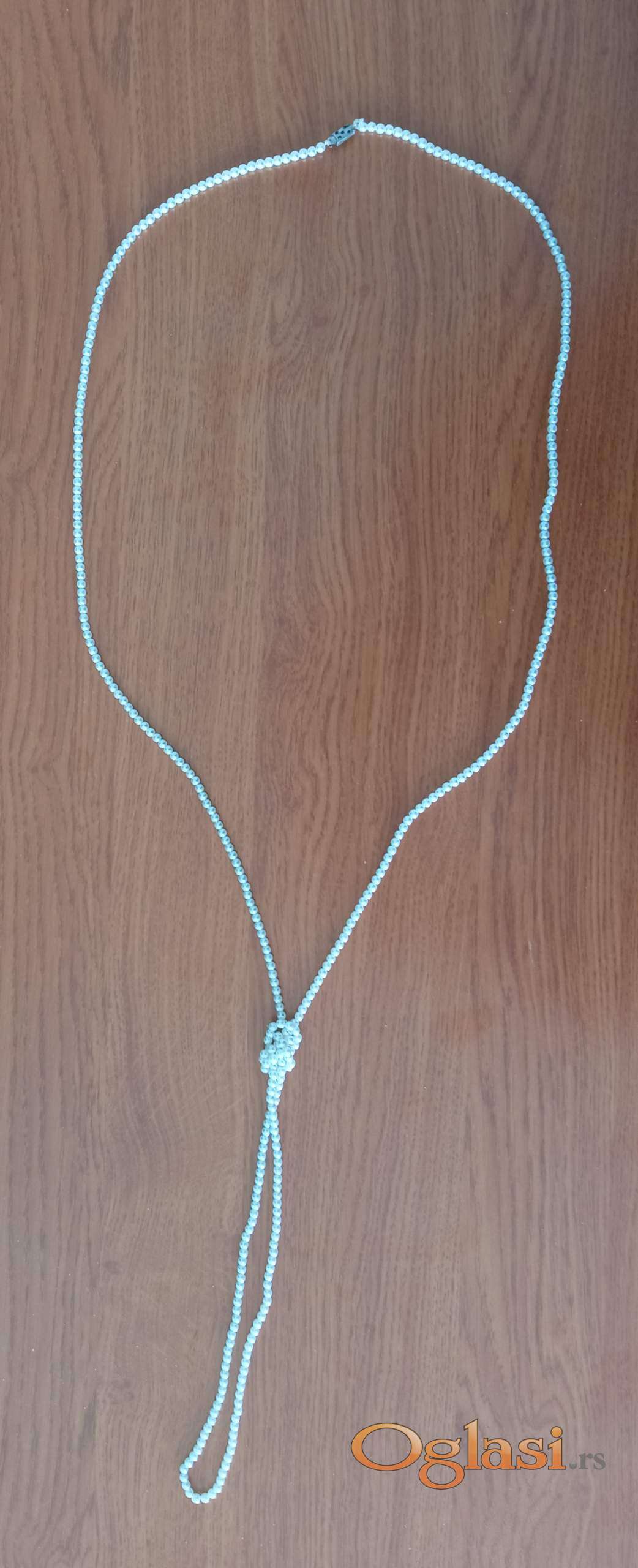 Bela biserna maxi ogrlica dugackog izgleda sa mogucnoscu raznog vezivanja i umotavanja