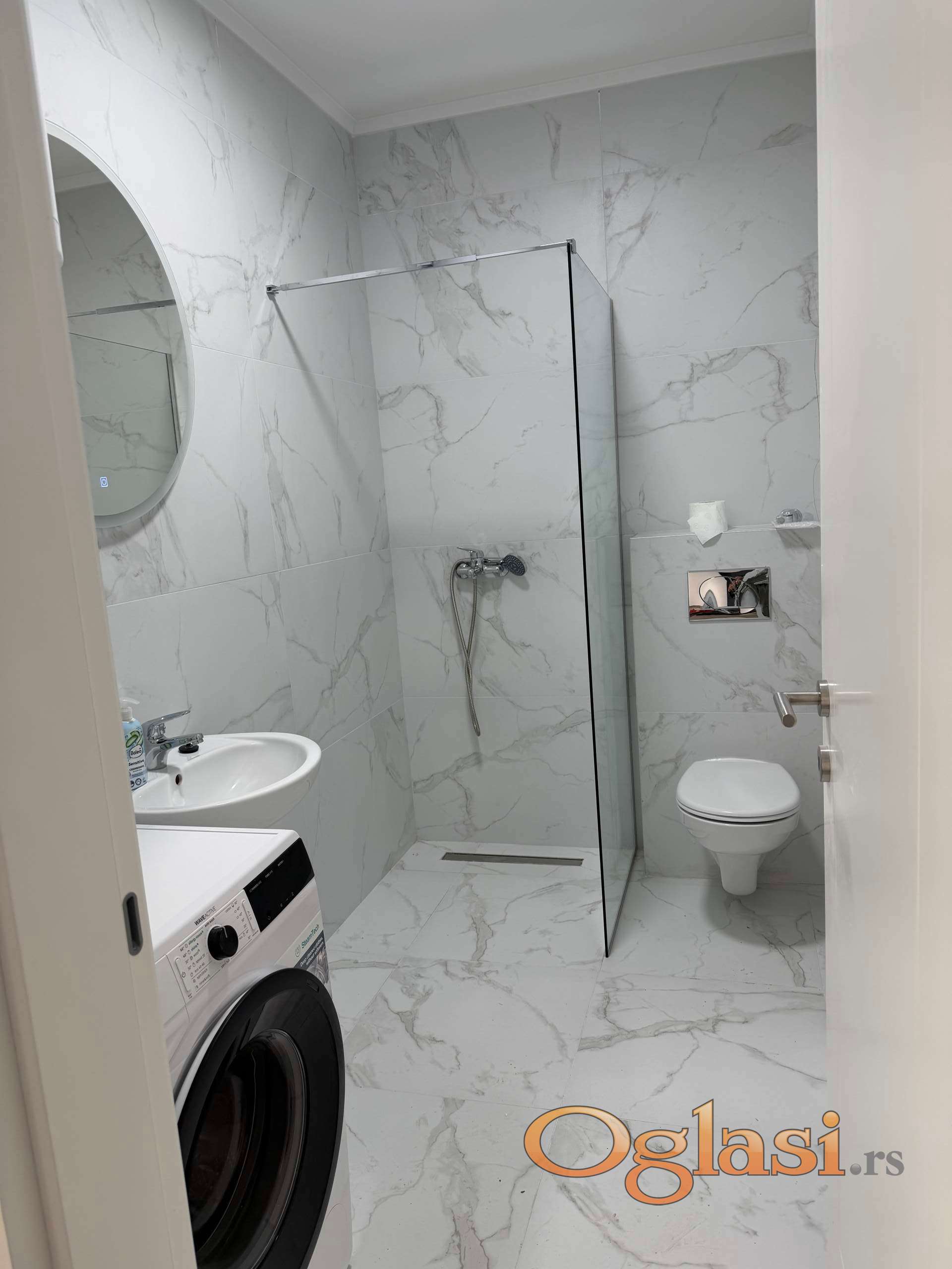 Prostor poseduje novu kuhinju sa ugradnim frižiderom, pločom i rernom, kao i mašinu za veš. Dve terase dodatno doprinose komforu prostora.