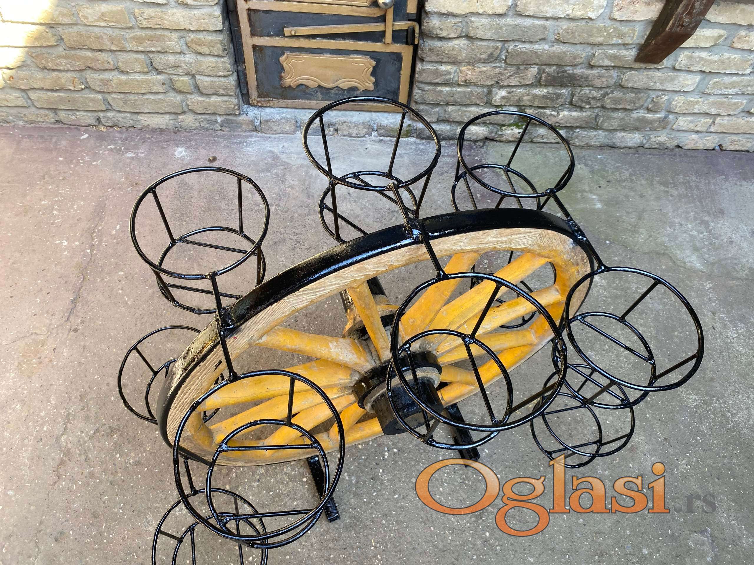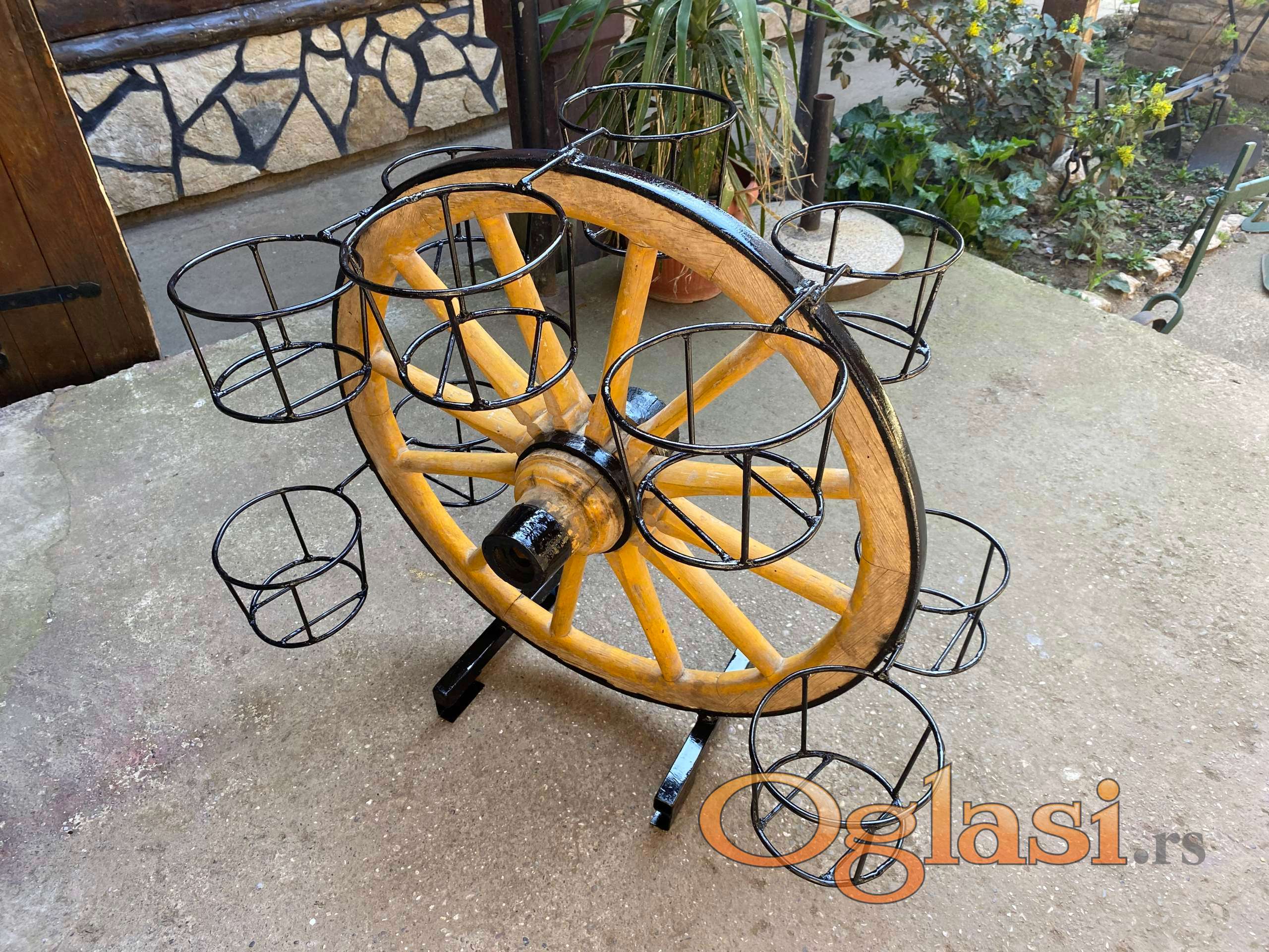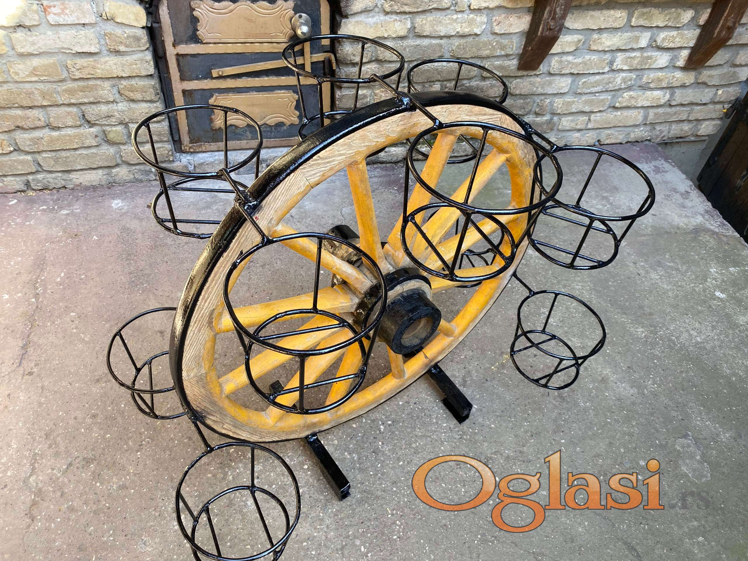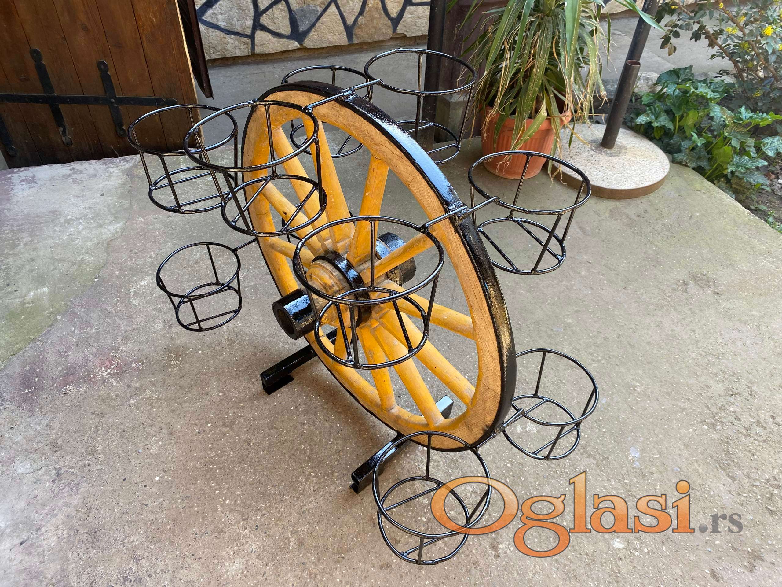 Stanje zardinjere kao na slikama sastoji se od tocka zapreznih kola i 10 mesta za saksije.Visine i obima 90 cm,uklapa se u svaki prostor..
